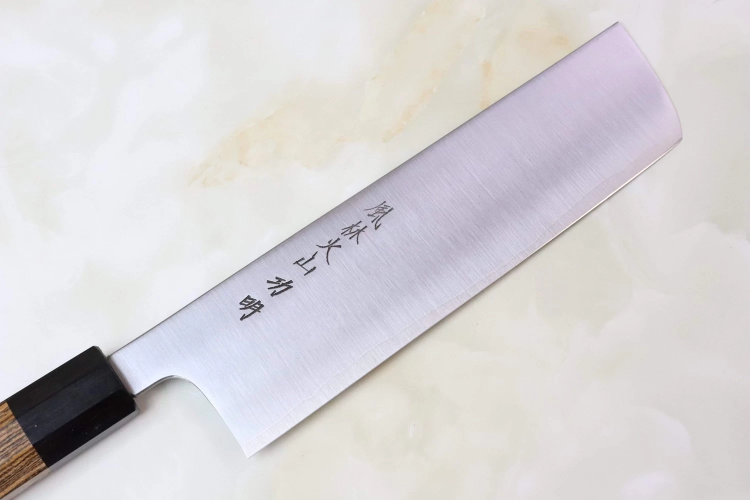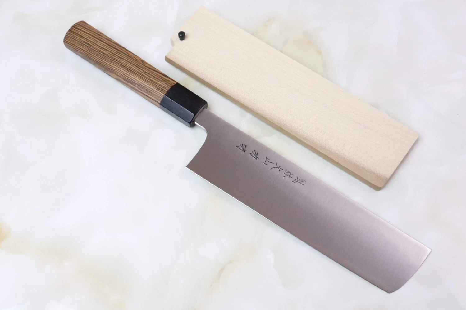 The Nakiri is a double bevel edged knife that is rectangular in profile and has a tall, thin blade. It is popular throughout Japan and is often used by home cooks for quickly and efficiently chopping, slicing or mincing vegetables and fruit. It is becoming increasingly popular with vegetarians.