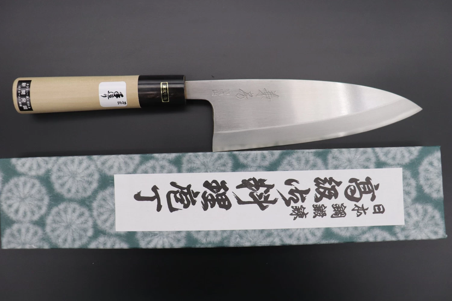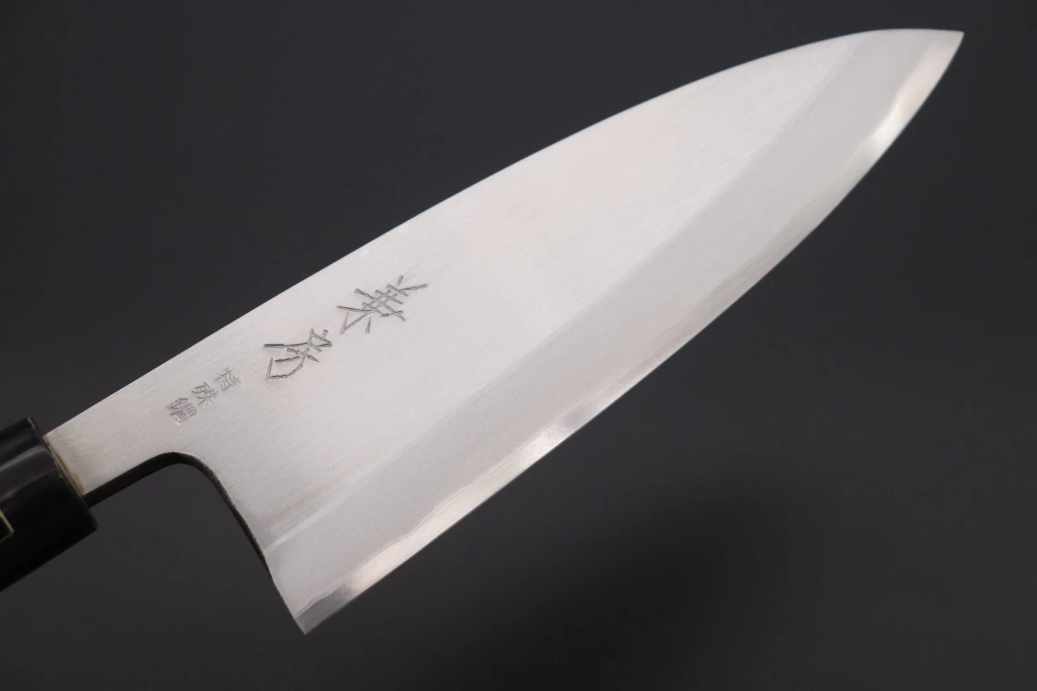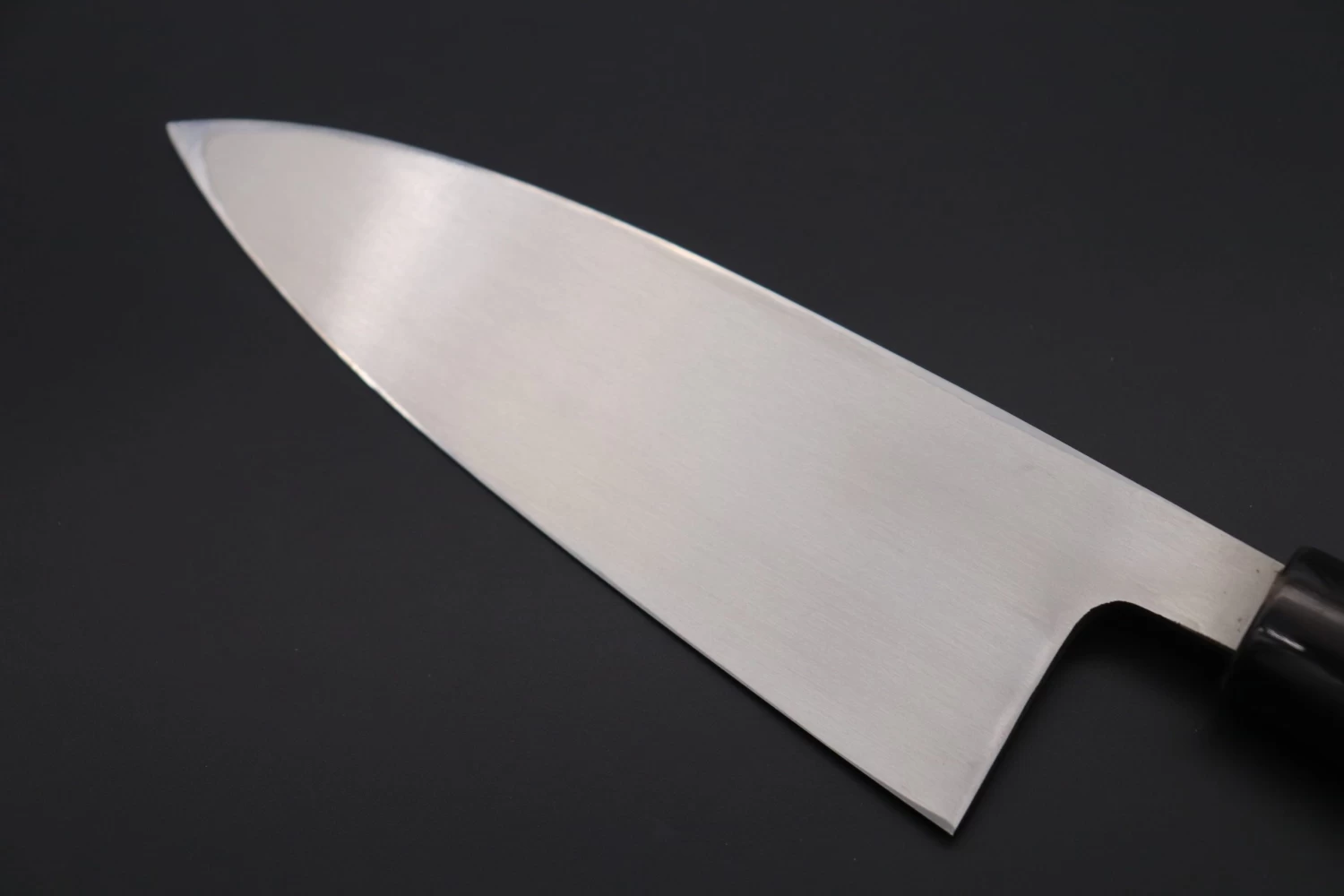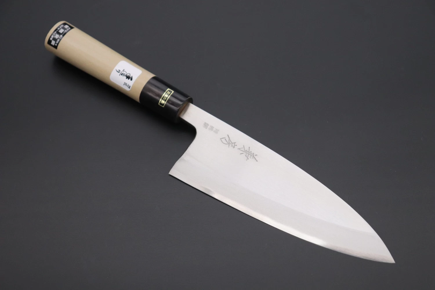 The Japanese Deba, which is also called the Hon-deba (Literally, “true deba”), is traditionally used to clean and fillet whole fish, but it is also commonly used for breaking down and dressing poultry and other meat with small bones. The significant weight of the Deba is desirable because, with adequate care, the sturdy heel section of the knife can be used to cut or chop through the bones found in small and medium-sized fish and poultry.
