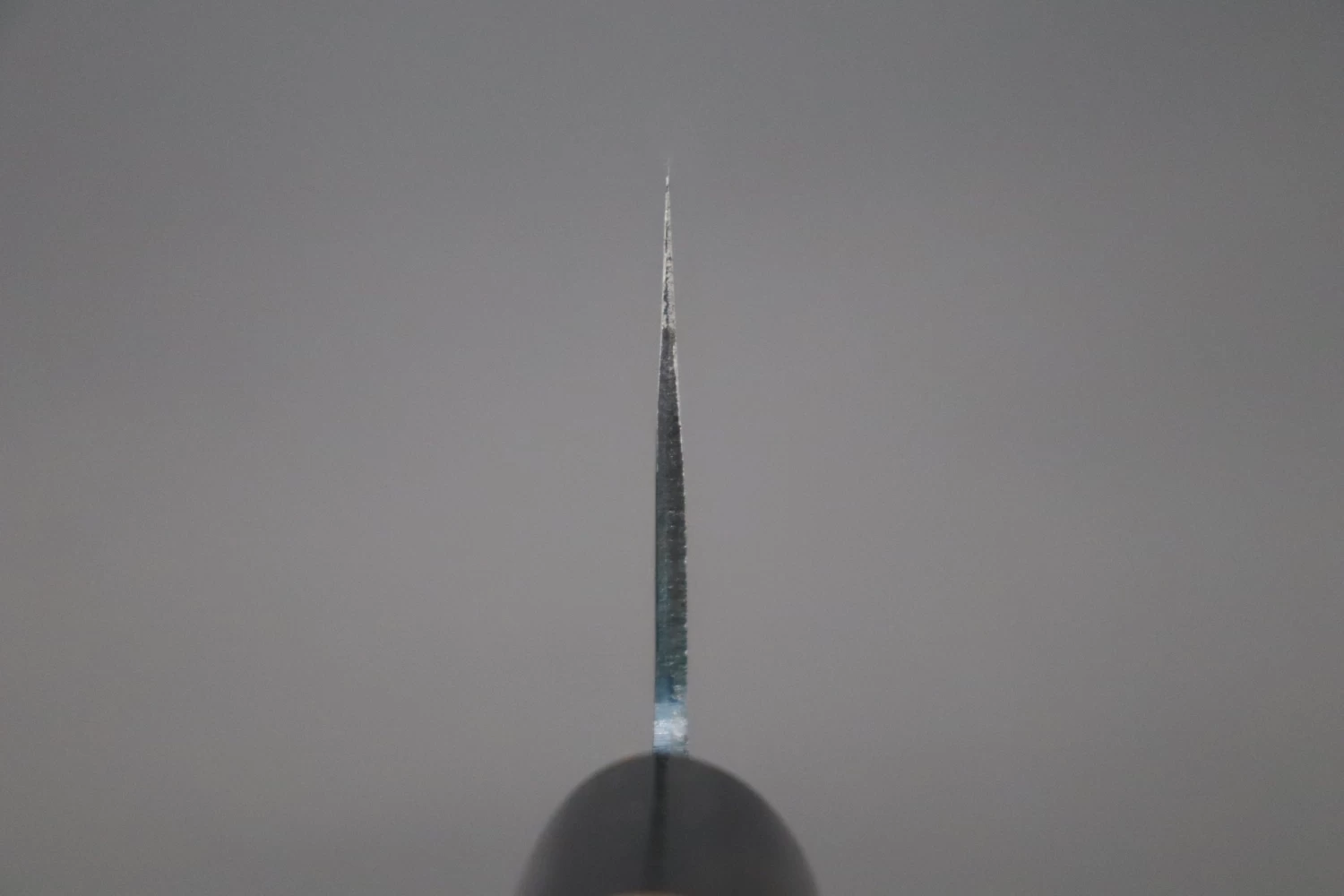 The black-colored Kurouchi finish, which covers the upper soft iron part of the blade, is a special traditional coating that produces a unique luster and improved corrosion-resistance. However, while Kurouchi knives require less maintenance than typical carbon steel knives, please remember that the White Steel No.2 blade core and the soft iron portion of the bevel can still discolor or rust easily.