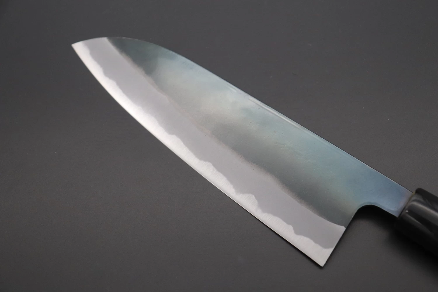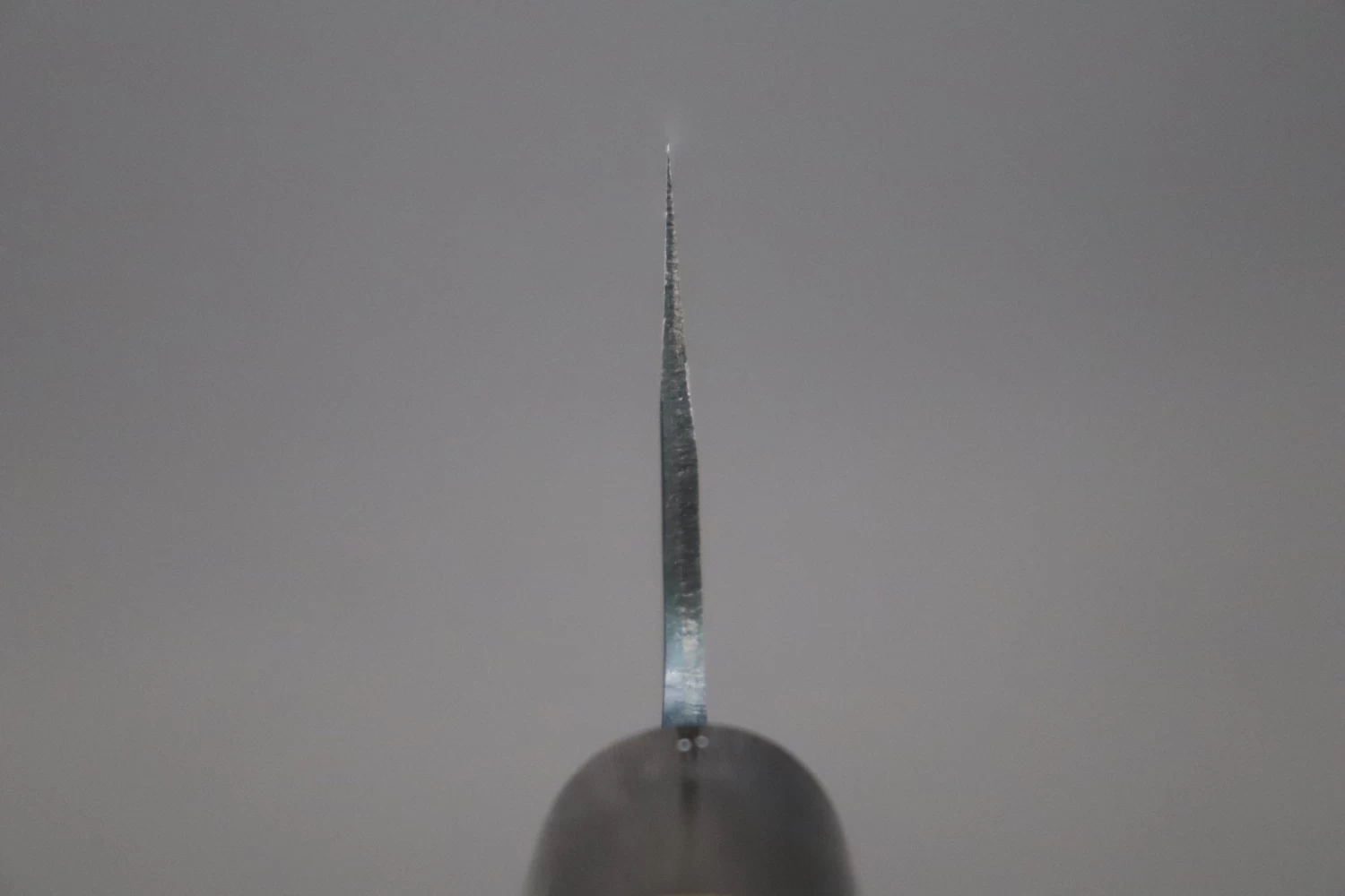 The black-colored Kurouchi finish, which covers the upper soft iron part of the blade, is a special traditional coating that produces a unique luster and improved corrosion-resistance. However, while Kurouchi knives require less maintenance than typical carbon steel knives, please remember that the White Steel No.2 blade core and the soft iron portion of the bevel can still discolor or rust easily.