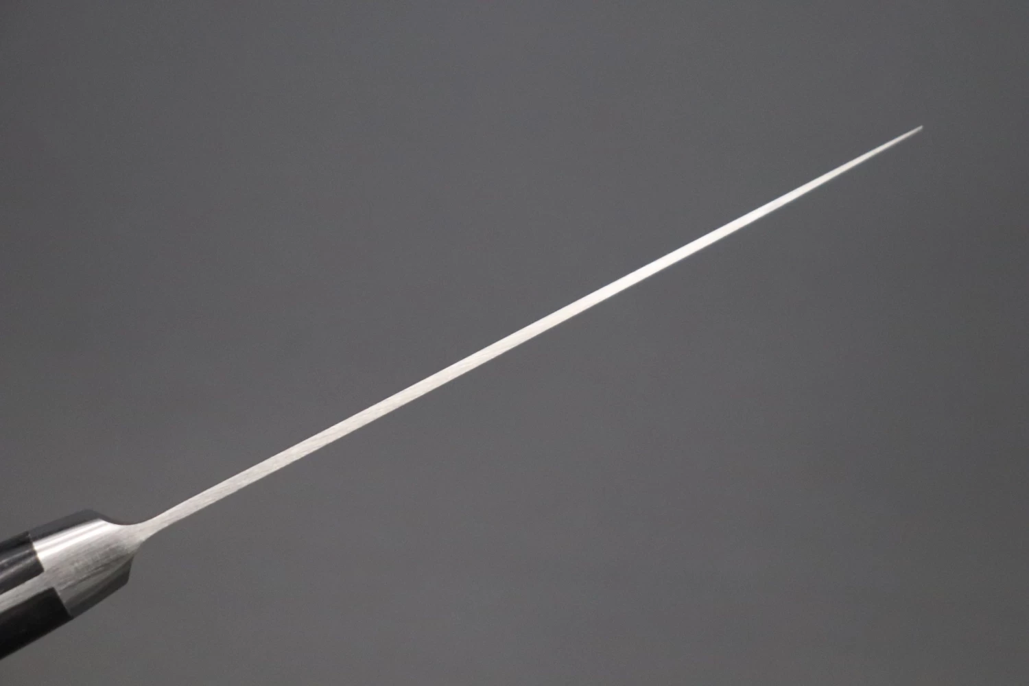 A mainstay of professional Western kitchens, the Petty knife is a small general-purpose knife used for peeling, shaping, and slicing fruits and vegetables, chopping herbs, and making garnishes. The compact size and relatively narrow blade of the Petty knife mean that it is very nimble and controllable, thus it is ideal for making precise cuts.
