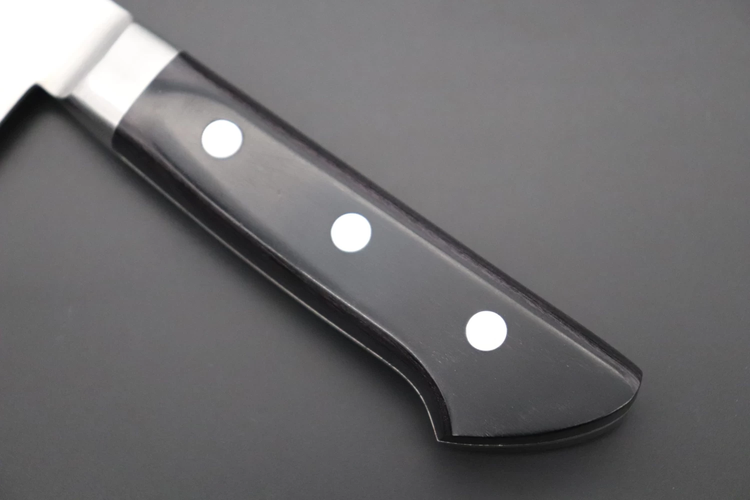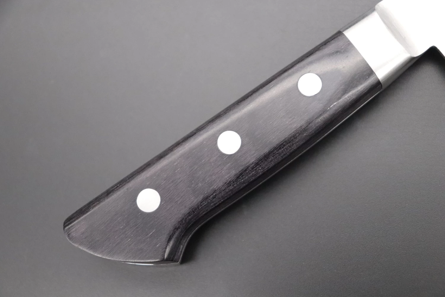 This knife has comfortable black pakkawood handles and a stainless steel bolster, which provides good blade balance and a fine grip.