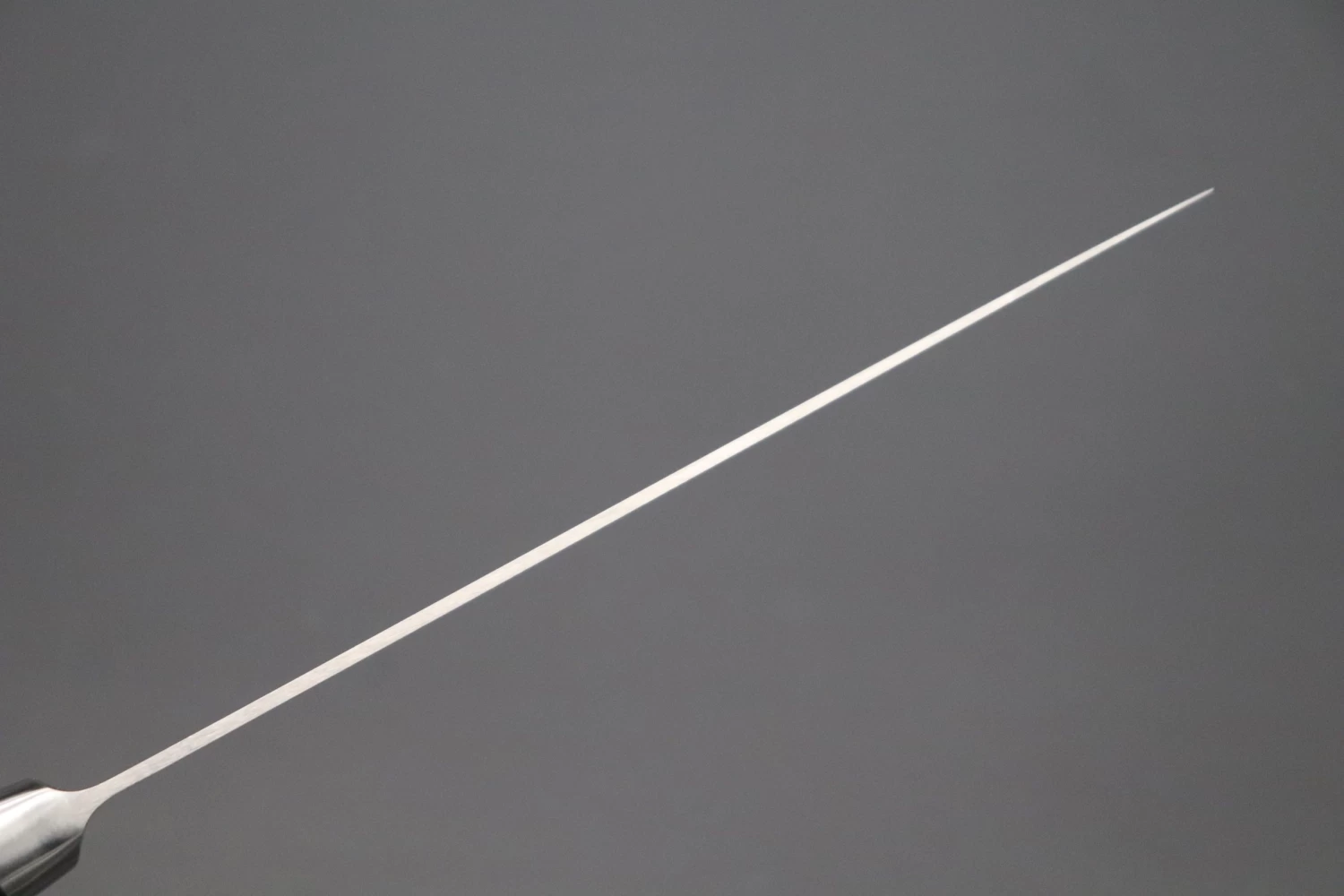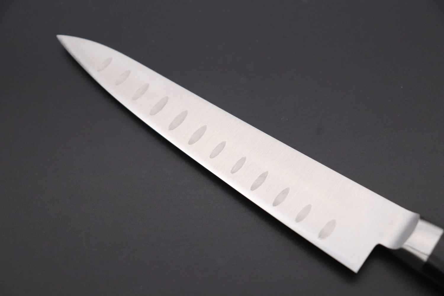 A mainstay of professional Western kitchens, the Petty knife is a small general-purpose knife used for peeling, shaping, and slicing fruits and vegetables, chopping herbs, and making garnishes. The compact size and relatively narrow blade of the Petty knife mean that it is very nimble and controllable, thus it is ideal for making precise cuts.