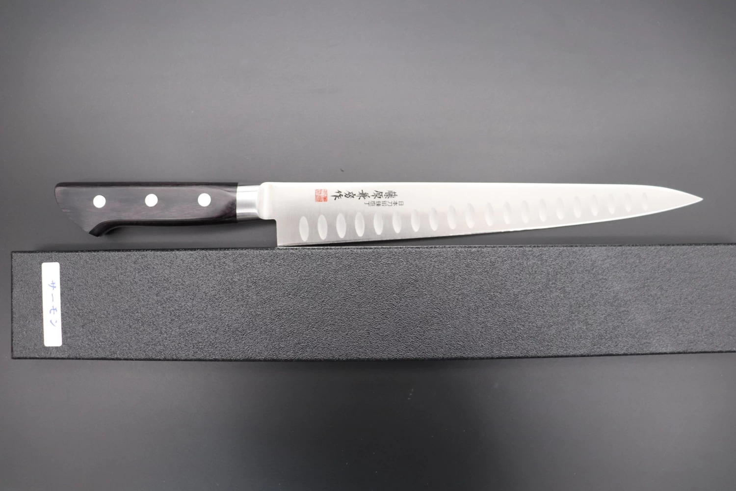 We recommend Fujiwara FKS knife to first-time buyers of Japanese knives because of the reliable quality and affordable price range. Fujiwara FKS knife has good strength, cutting performance and ease of maintenance, which are some of most important features for first-time users of Japanese knives.