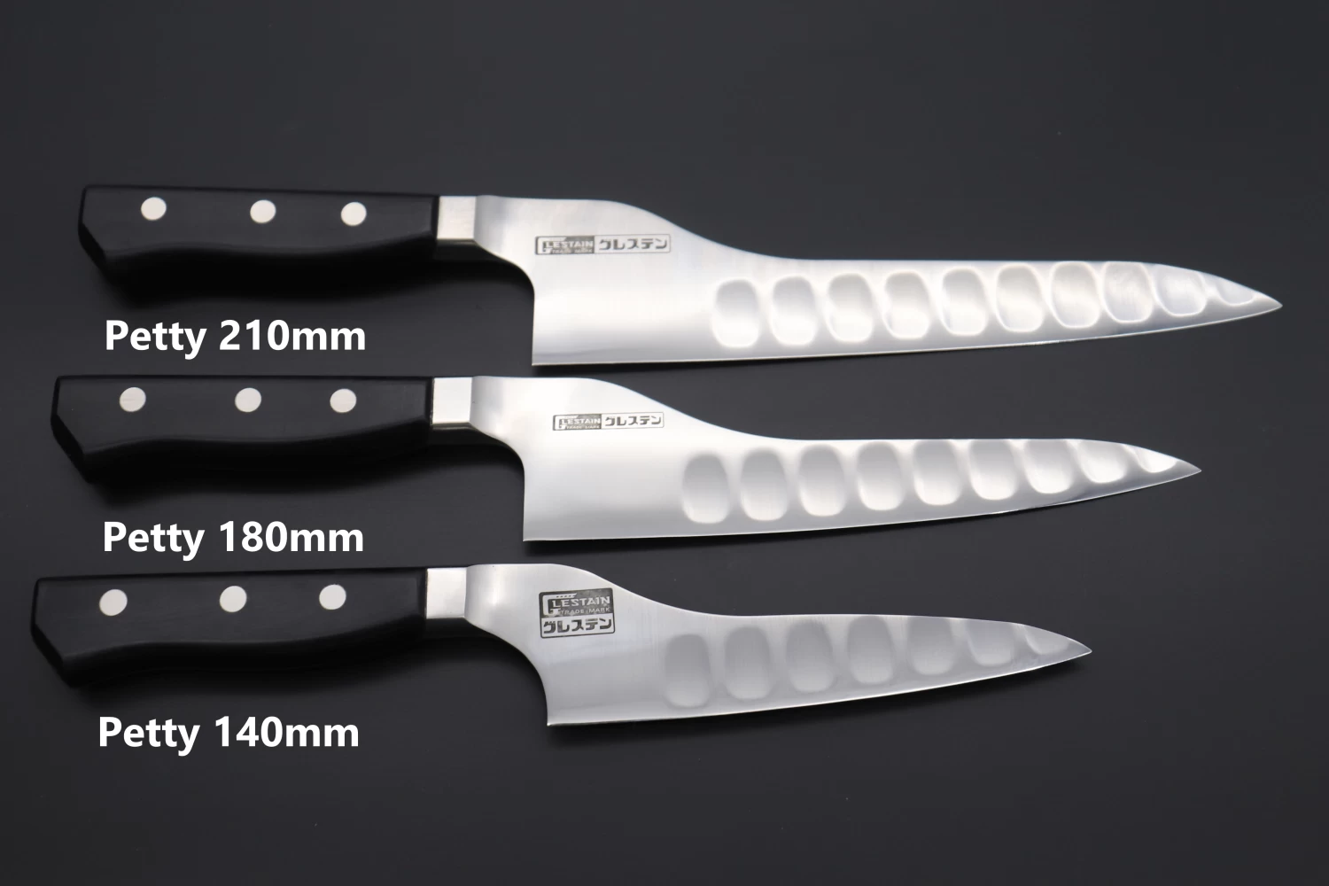 The blade of Glestain knife is made from a special stainless steel called ACUTO440 (HRc. 59) and features unique dimples, which provide extra cutting performance and reduce the likelihood of food sticking to the blade.