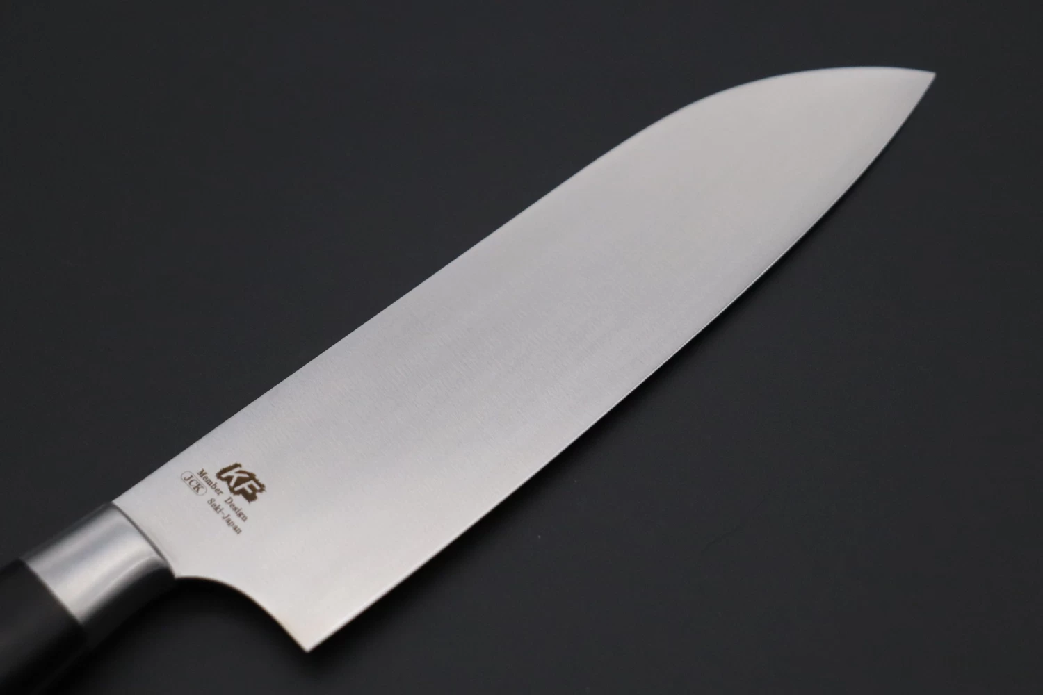 The tall blade and rounded nose / tip of the Santoku make it a versatile knife that is well suited to cutting meat, fish, or vegetables; Hence it’s name, which literally means “Three-purpose”. The Santoku is often recommended as a multi-purpose kitchen knife.