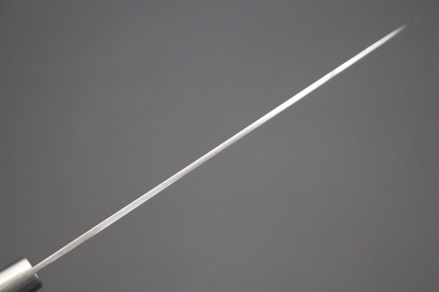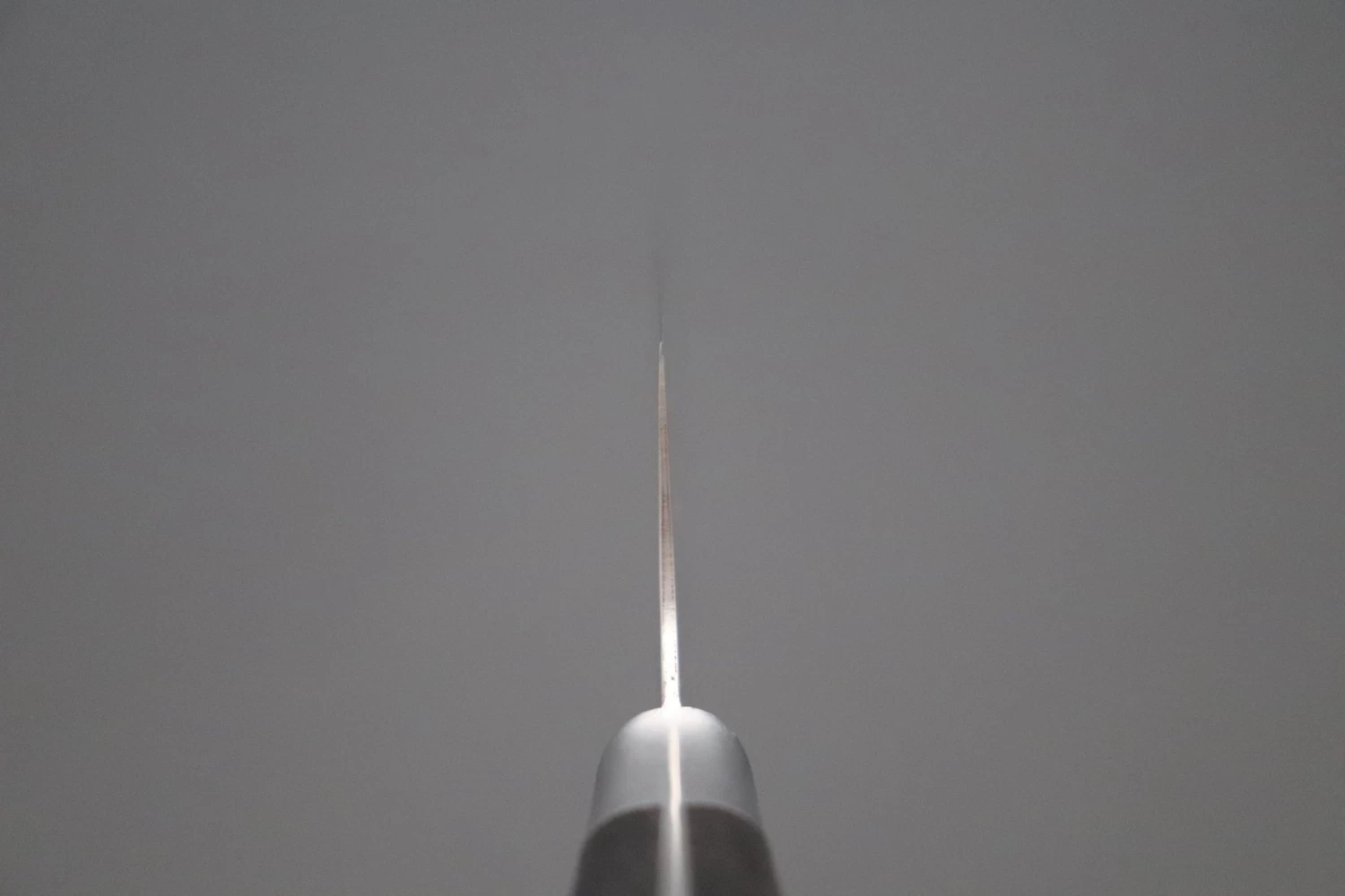 The blade is made of VG-10 Cobalt Steel (HRC60 to 61). Even though it is simple appearance, we can feel the Hattori’s detailed works high level of craftsmanship from finely hand sharpened and polished blade.