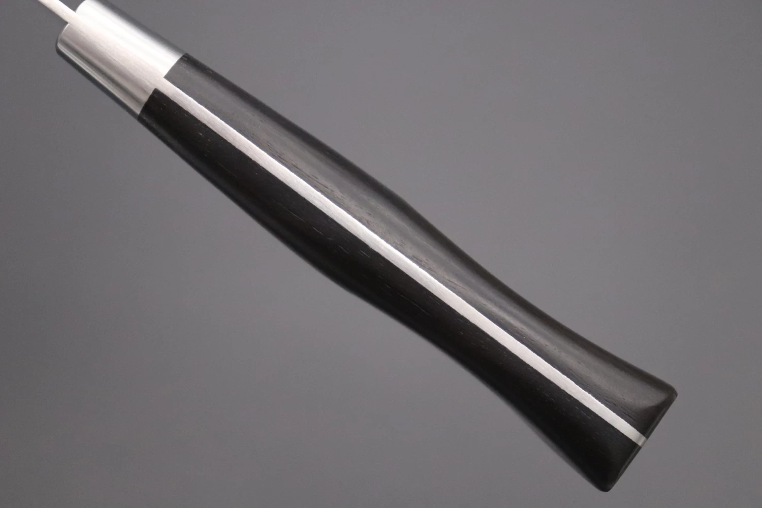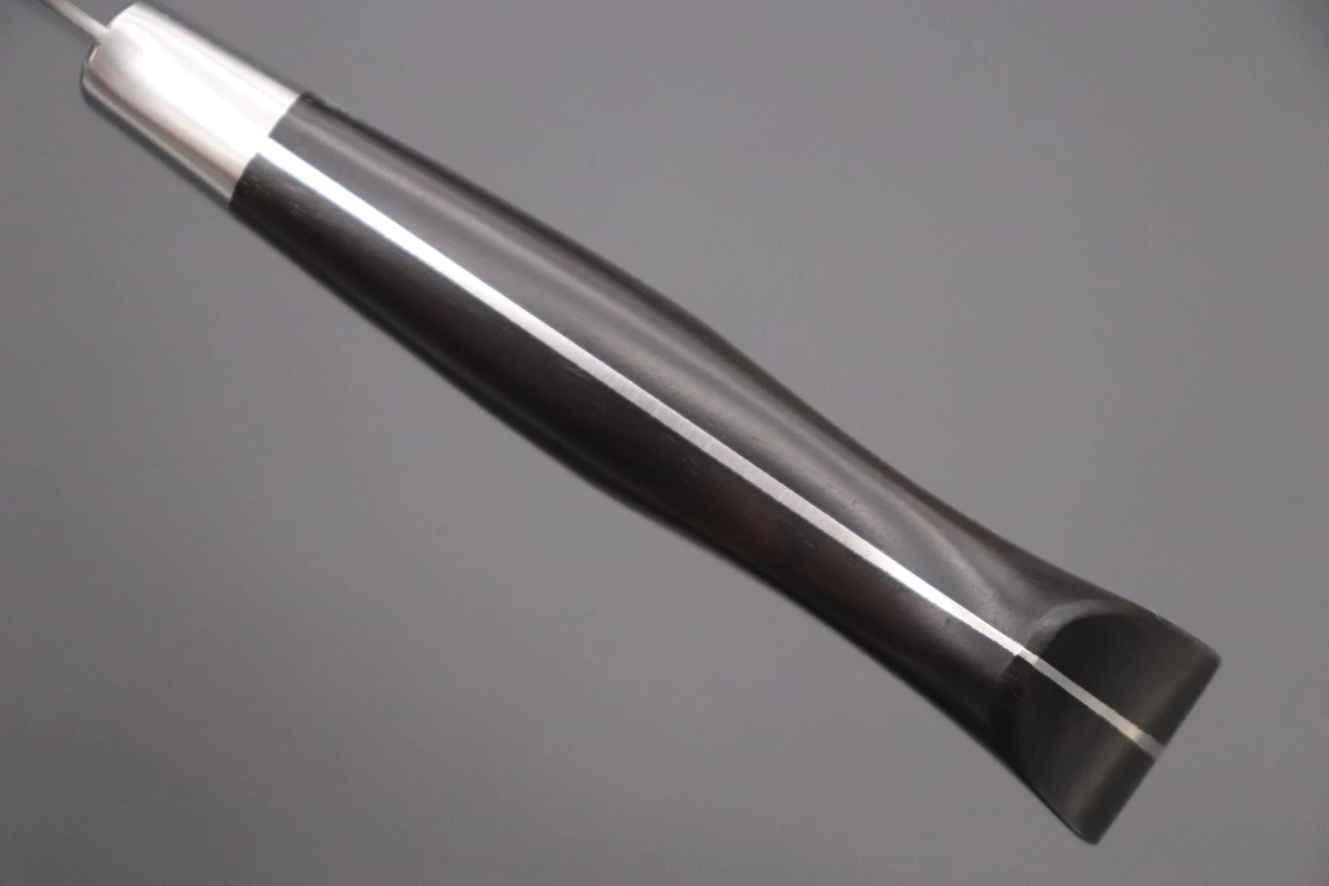For the handle material, Master Hattori chose the African Black wood, which has an elegant look of dark & simple textures. Hattori’s fine custom hand working process can be seen on its well hand contoured and perfect shaped handle.