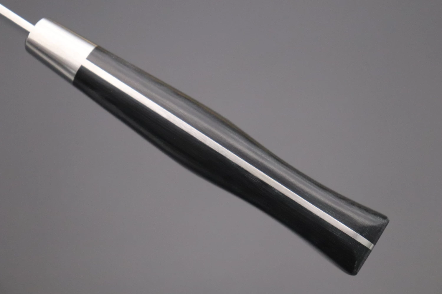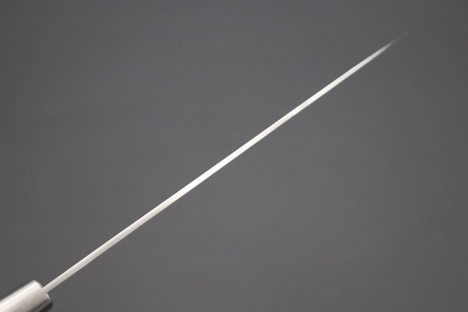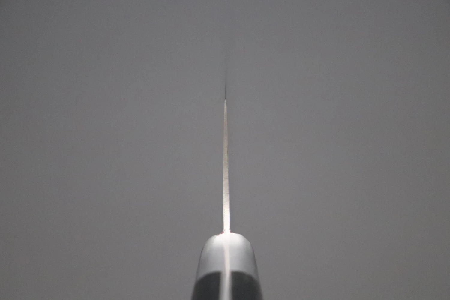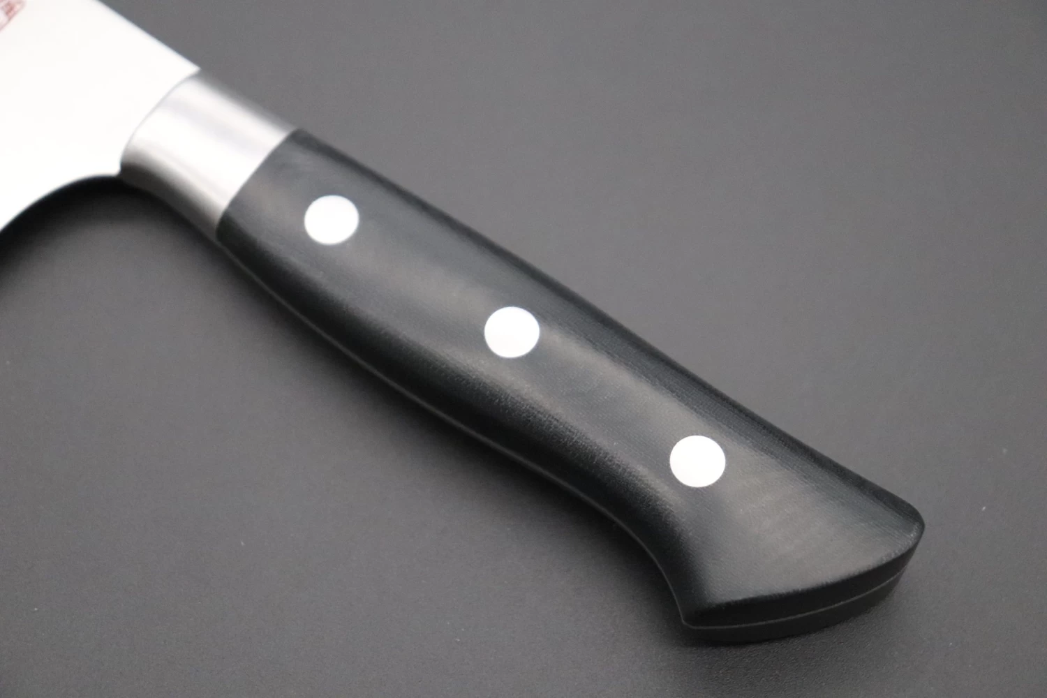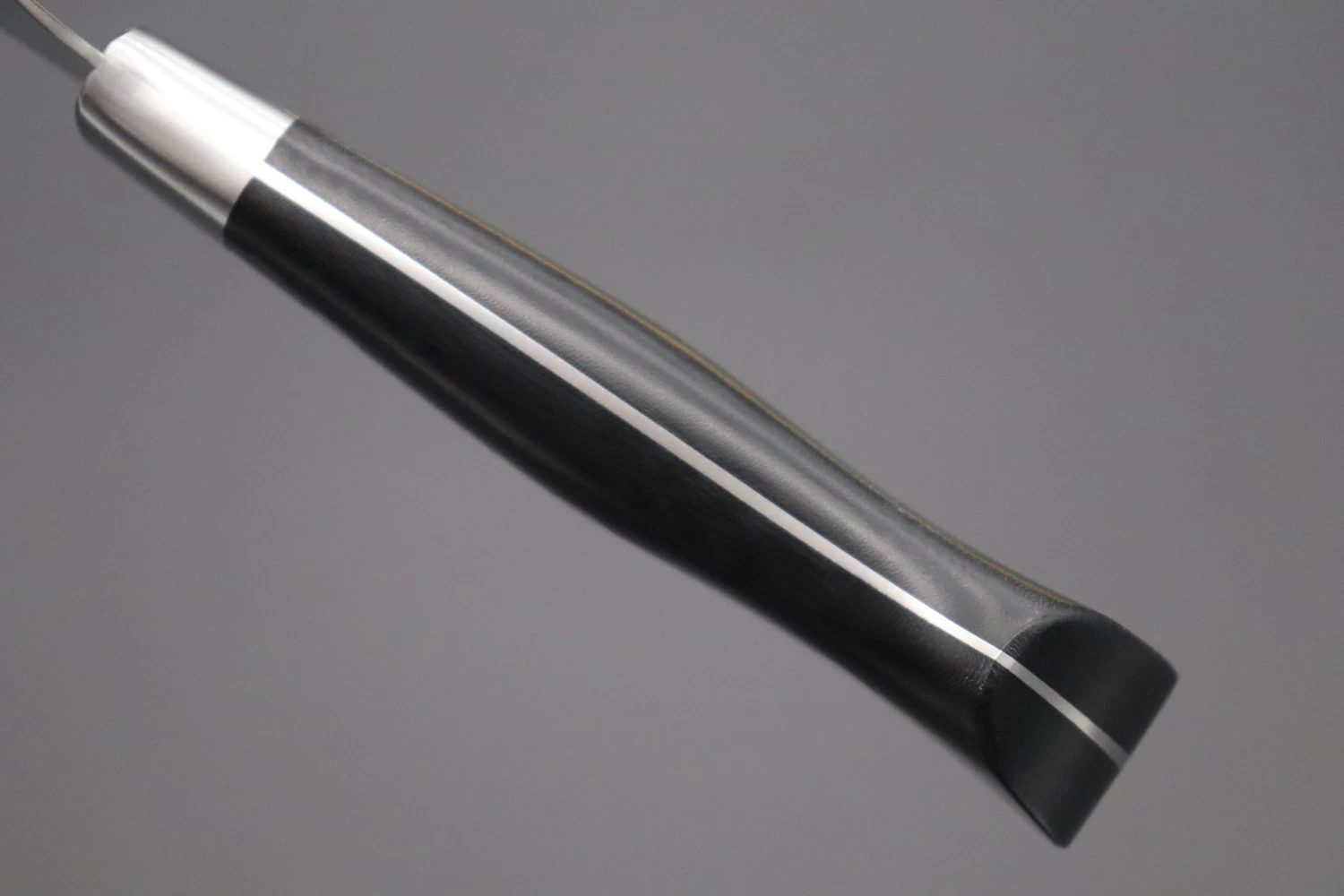 The blade is made of VG-10 Cobalt Steel (HRC60 to 61). Even though it is simple appearance, we can feel the Hattori’s detailed works high level of craftsmanship from finely hand sharpened and polished blade.