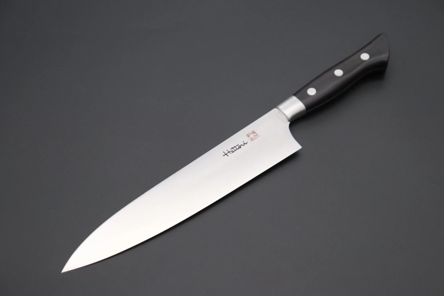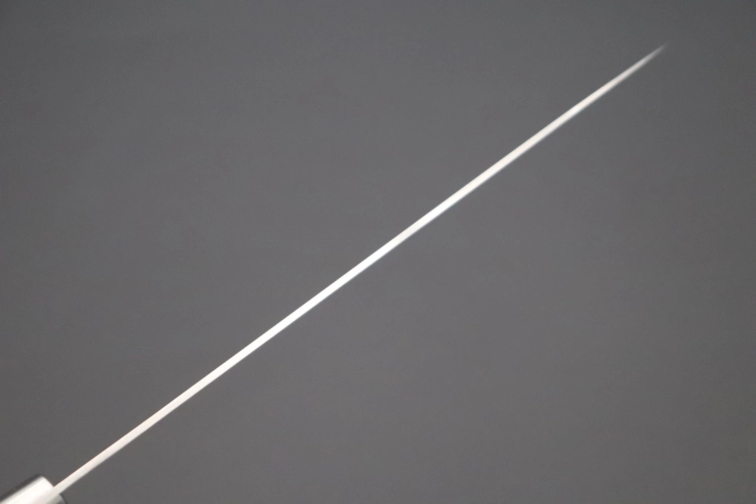 The blade is made of VG-10 Cobalt Steel (HRC60 to 61). Even though it is simple appearance, we can feel the Hattori’s detailed works high level of craftsmanship from finely hand sharpened and polished blade.
