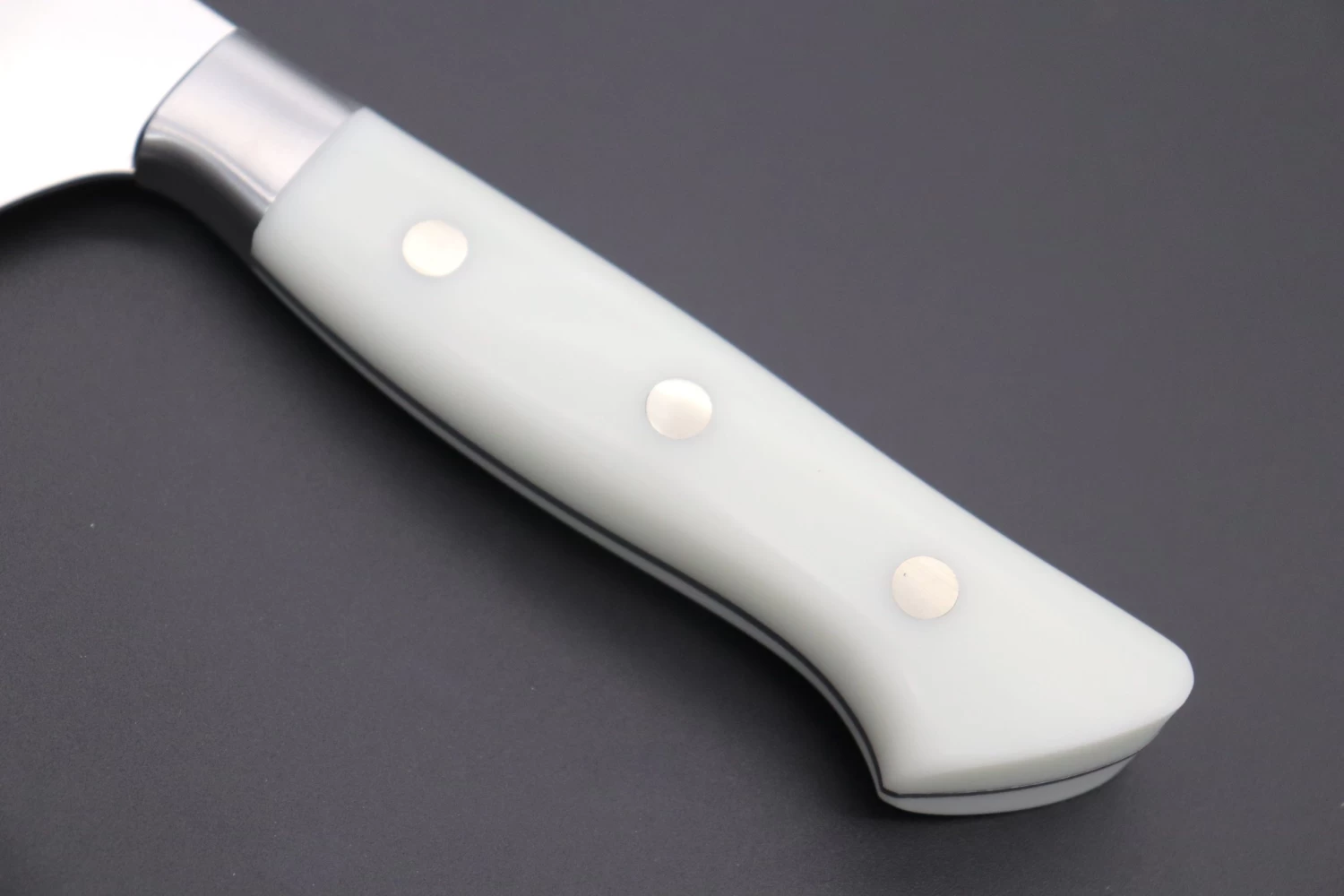 - Unlike German made knives, Japanese knife blades are ground to thin cutting edge for sharper cutting and easier re-sharpening. Please protect the edge from hitting hard materials to avoid chipping or cracking.