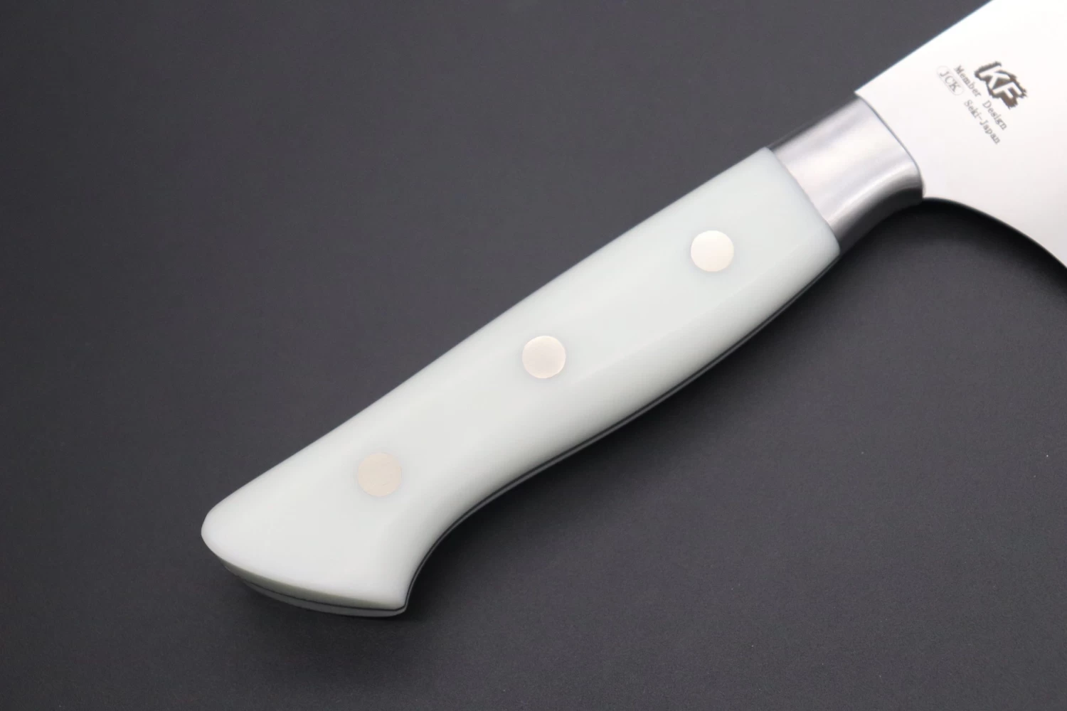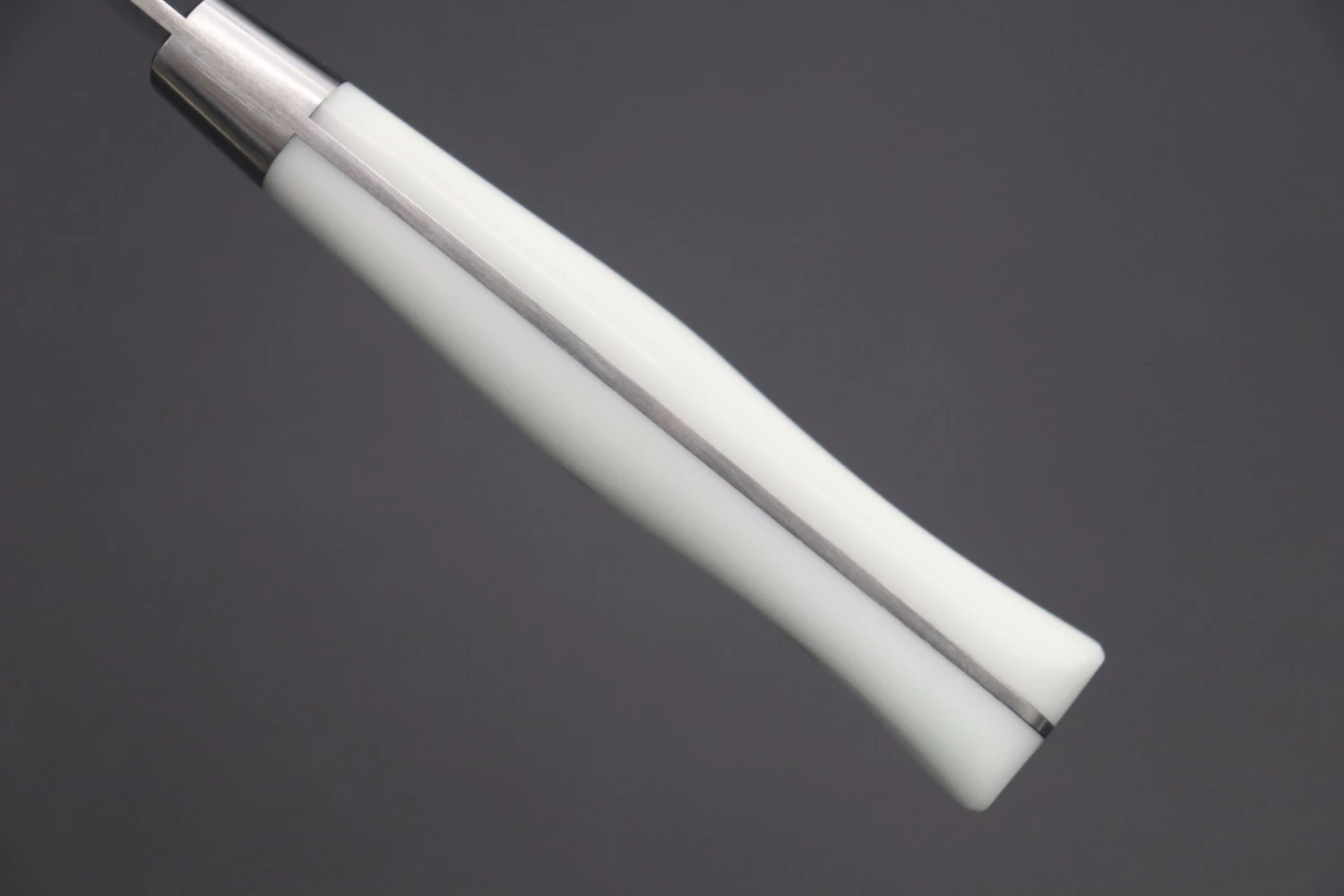 We have selected simple white color main and elegant& natural Marble stone texture, we believe this new handle matches well with your stylish kitchen and it will be great addition to your special knife set for the existing owners of Hattori FH knives too.