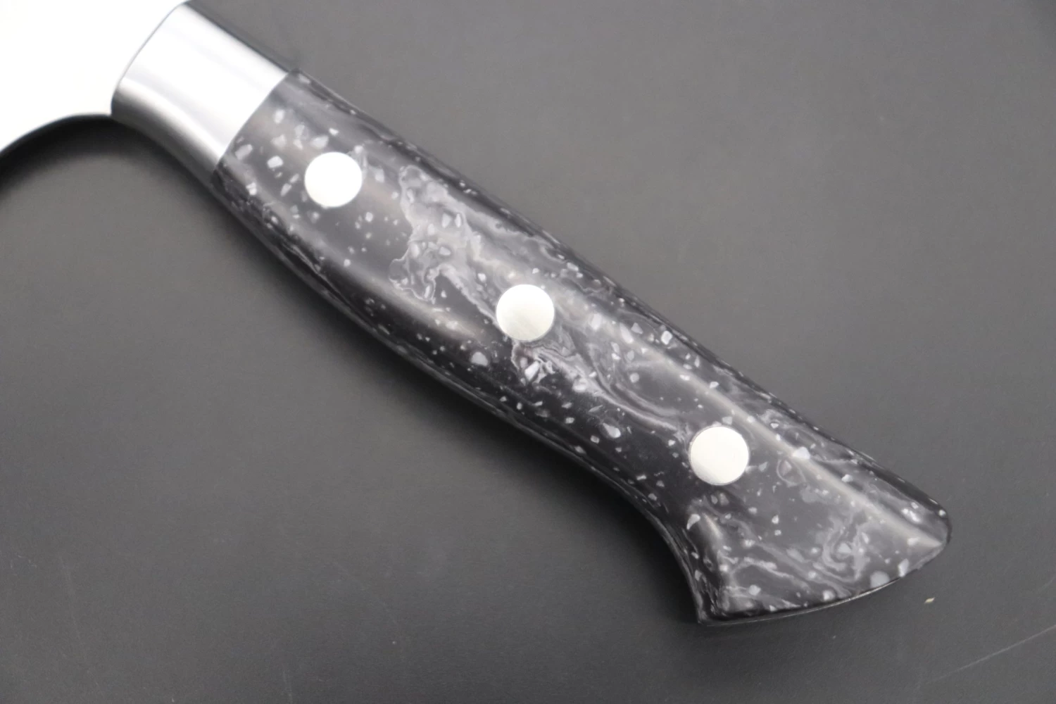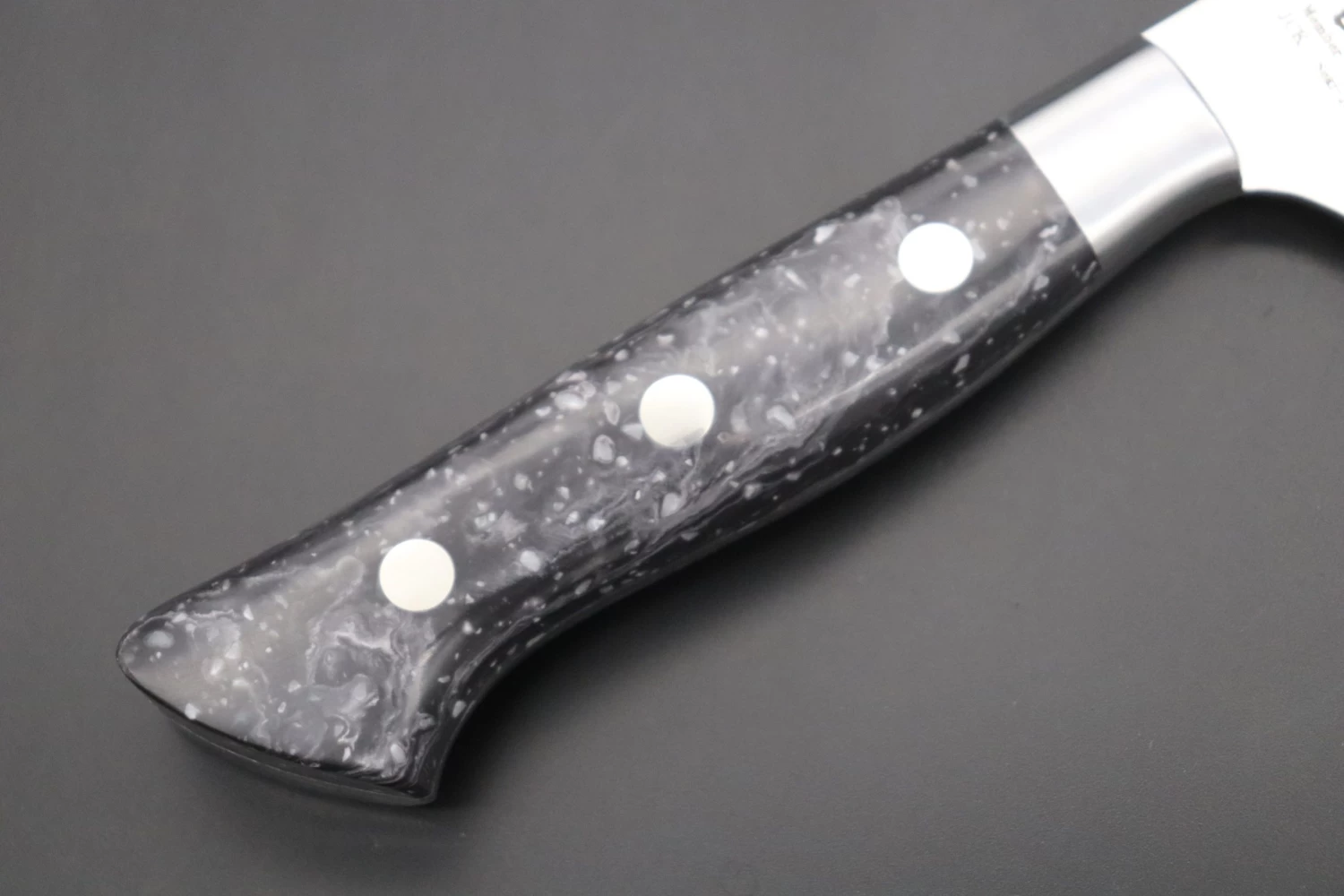 DuPont™ Corian® is a practical handle material that is very durable and water resistant. Master Hattori has carefully hand-contoured the handle and Stainless Steel bolster to provide a perfect, comfortable grip and superb blade balance.