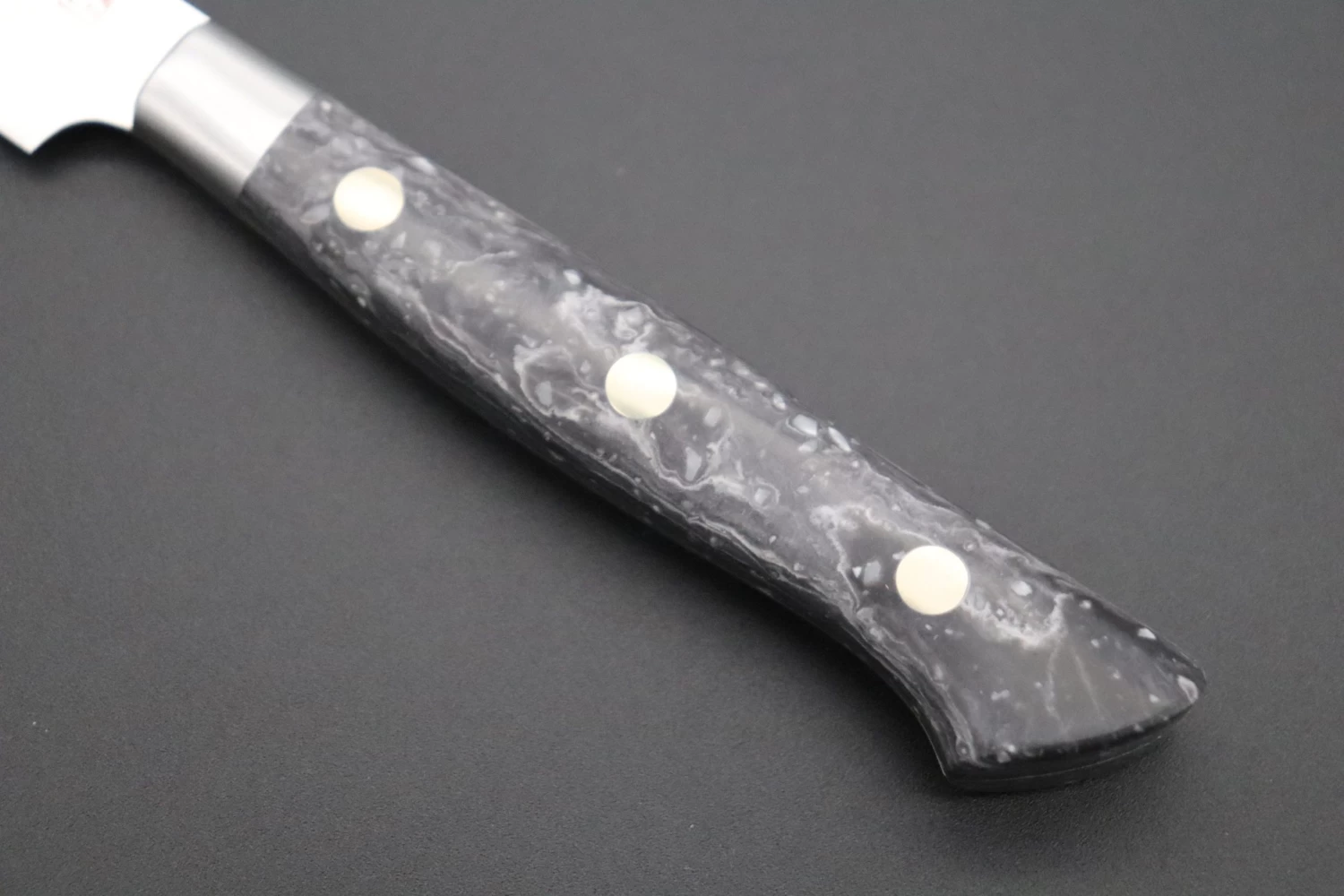DuPont™ Corian® is a practical handle material that is very durable and water resistant. Master Hattori has carefully hand-contoured the handle and Stainless Steel bolster to provide a perfect, comfortable grip and superb blade balance.
