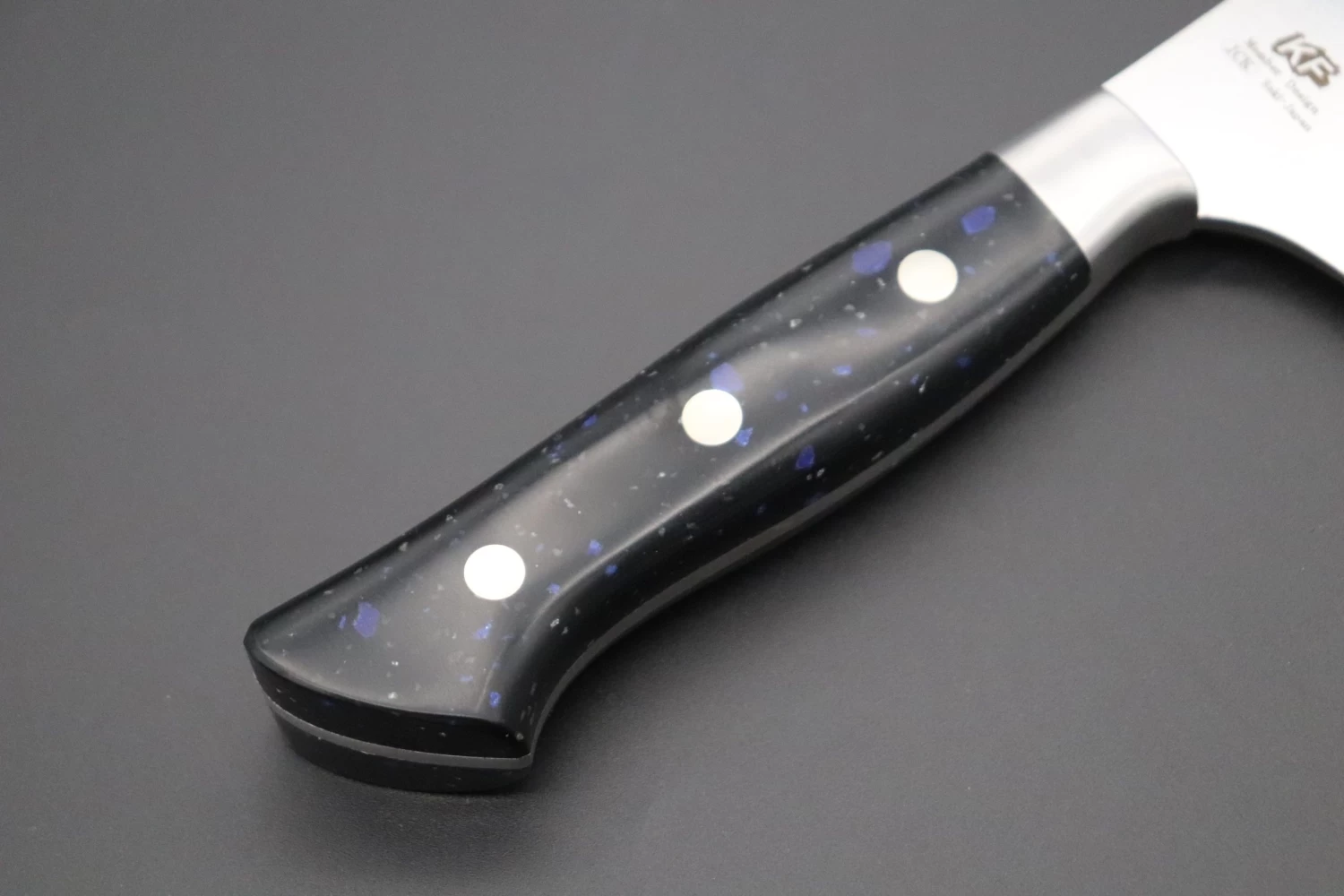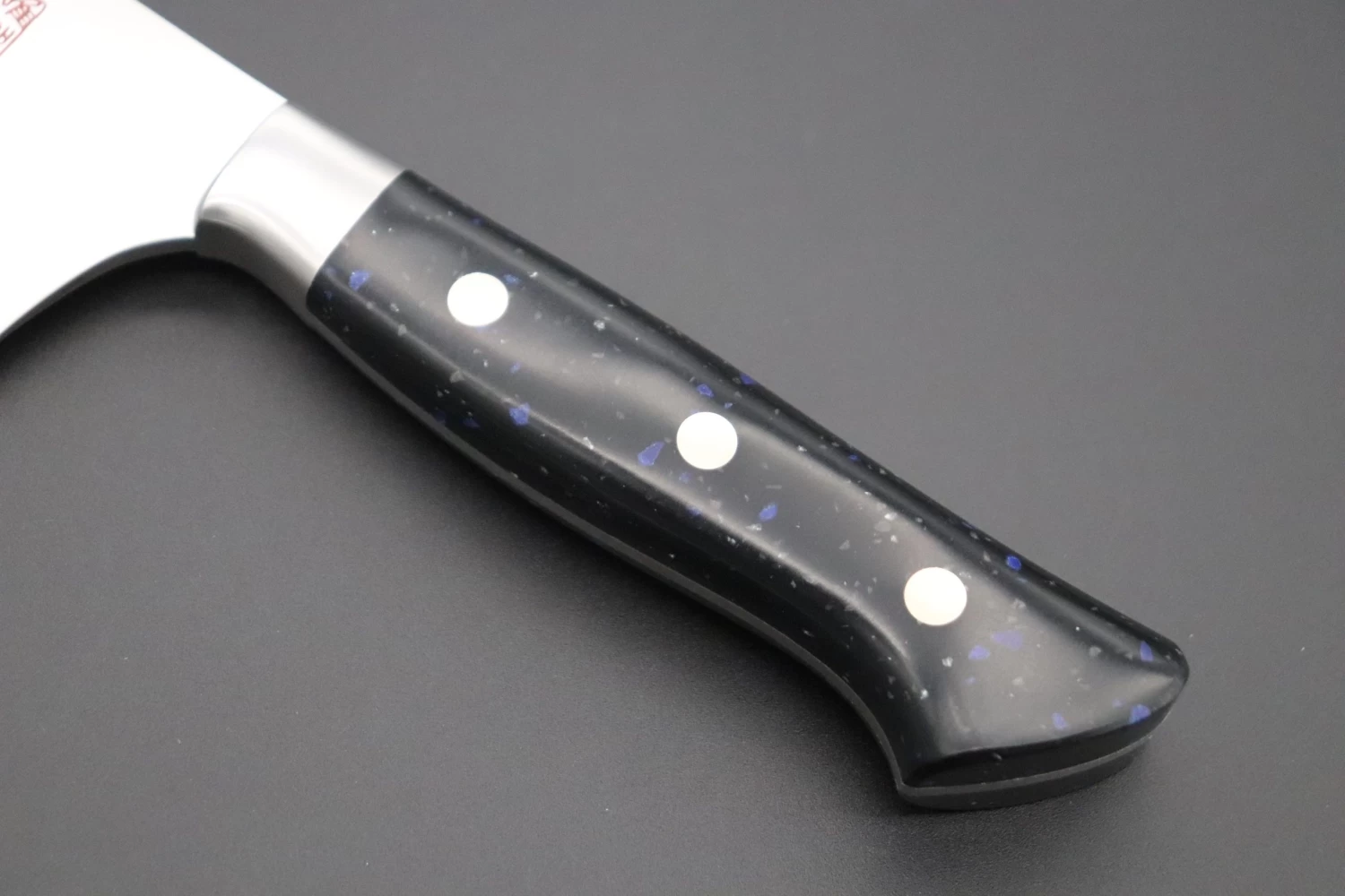 Master Hattori has used a new type of DuPont™ Corian®, called “Black Space”, for the handle scales of these knives. It has a unique, beautiful appearance that reminds us of stars and asteroids in the blackness of space.