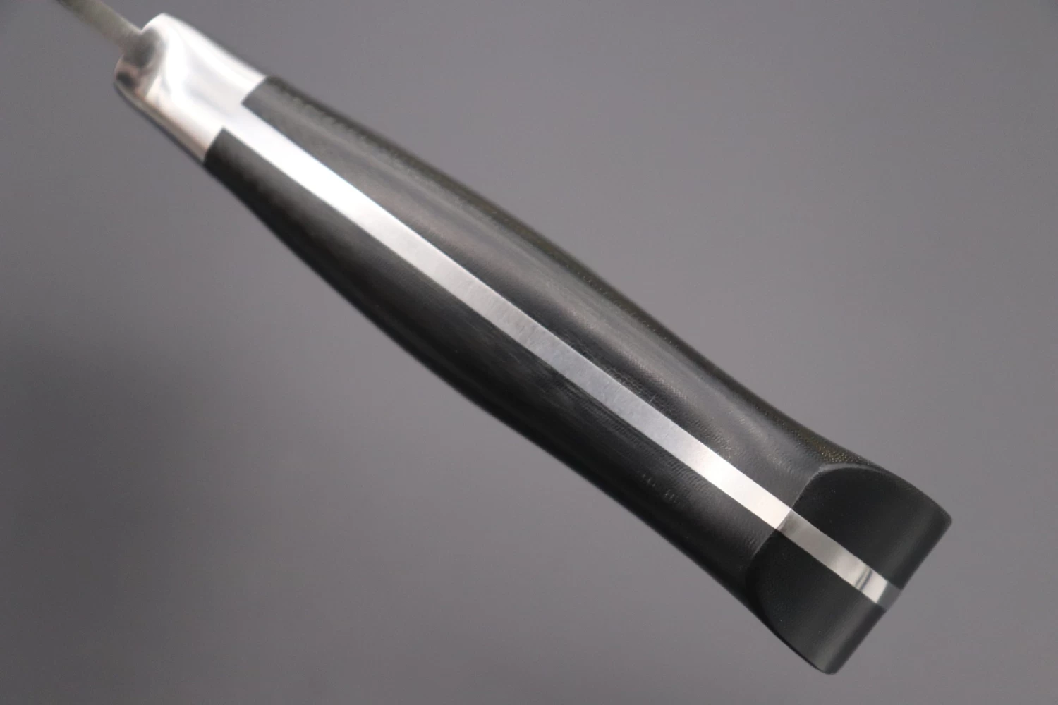 The blades of our FH Series knives are made from solid VG-10 Cobalt Steel (HRc. 60-61). At first glance these stainless steel blades might appear ‘simple’, but Master Hattori’s high level of craftsmanship and attention to detail is clearly visible if you carefully inspect their hand-sharpened edges and finely polished blades.
