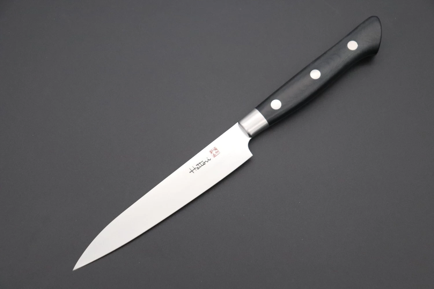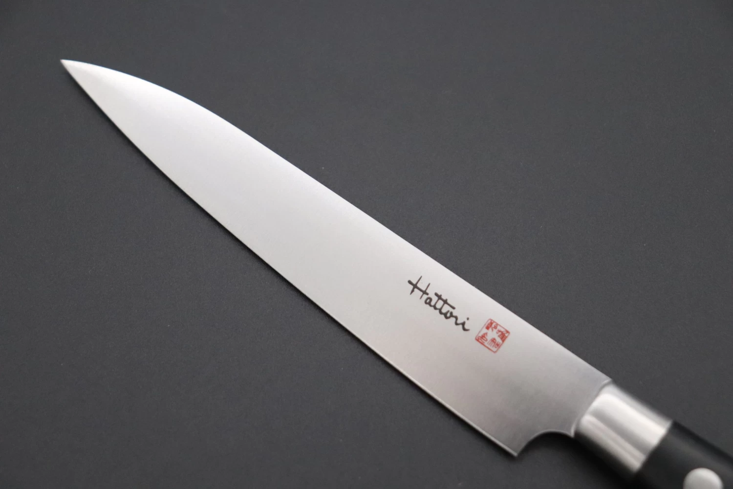 The blade is made of VG-10 Cobalt Steel (HRC60 to 61). Even though it is simple appearance, we can feel the Hattori’s detailed works high level of craftsmanship from finely hand sharpened and polished blade.