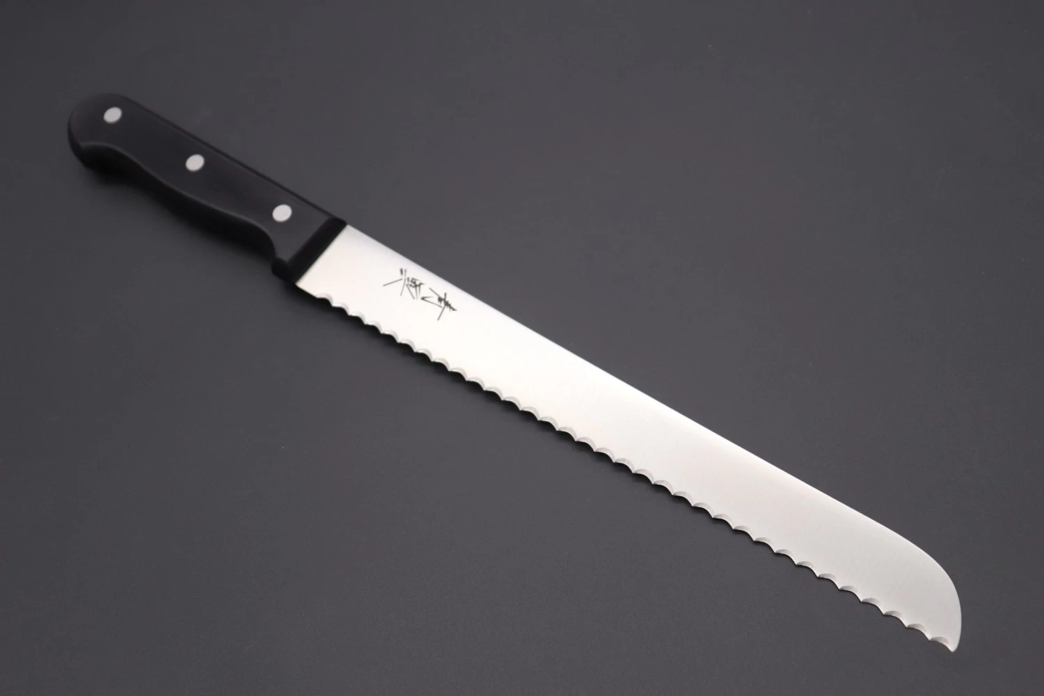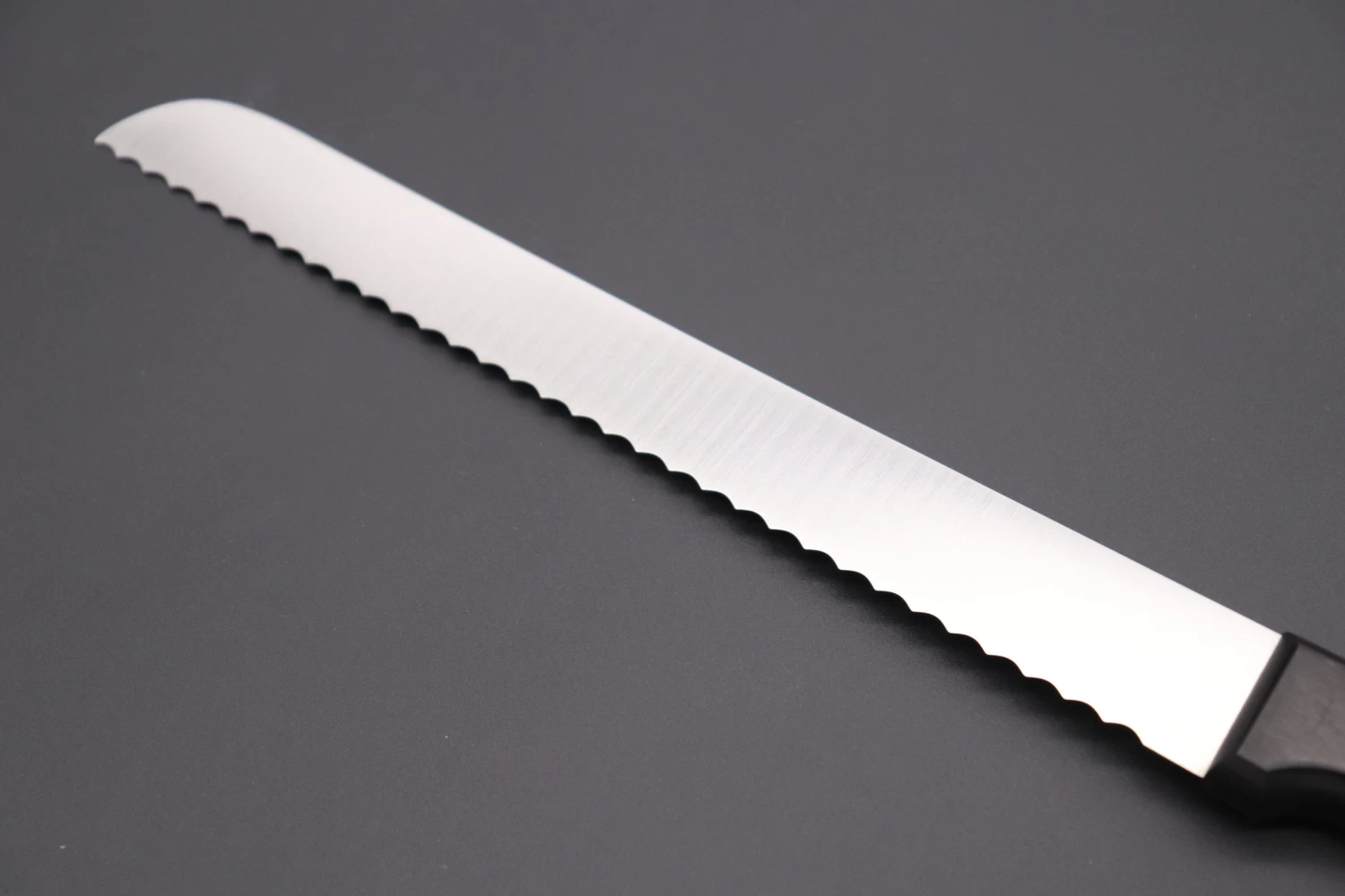 Serrated bread knives were invented for the sole purpose of cutting soft bread and baked goods without crushing them. However, depending on the type of serration, they can also be used to cut other foods including tomatoes, cucumbers, melons, and even preserved meats, such as salami. For this reason, many culinary professionals consider the humble bread knife an essential part of their kit.