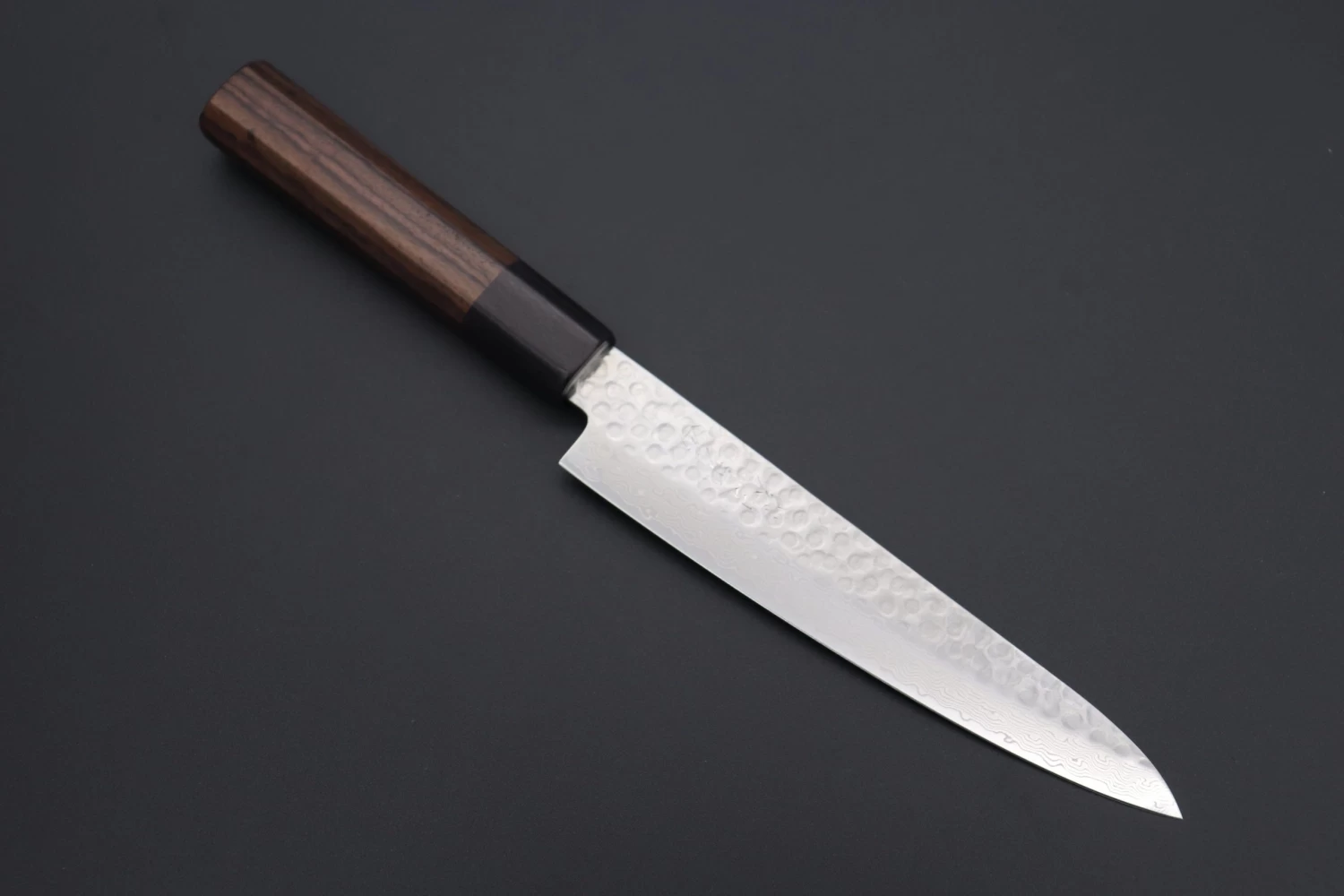 A mainstay of professional Western kitchens, the Petty knife is a small general-purpose knife used for peeling, shaping, and slicing fruits and vegetables, chopping herbs, and making garnishes. The compact size and relatively narrow blade of the Petty knife mean that it is very nimble and controllable, thus it is ideal for making precise cuts.
