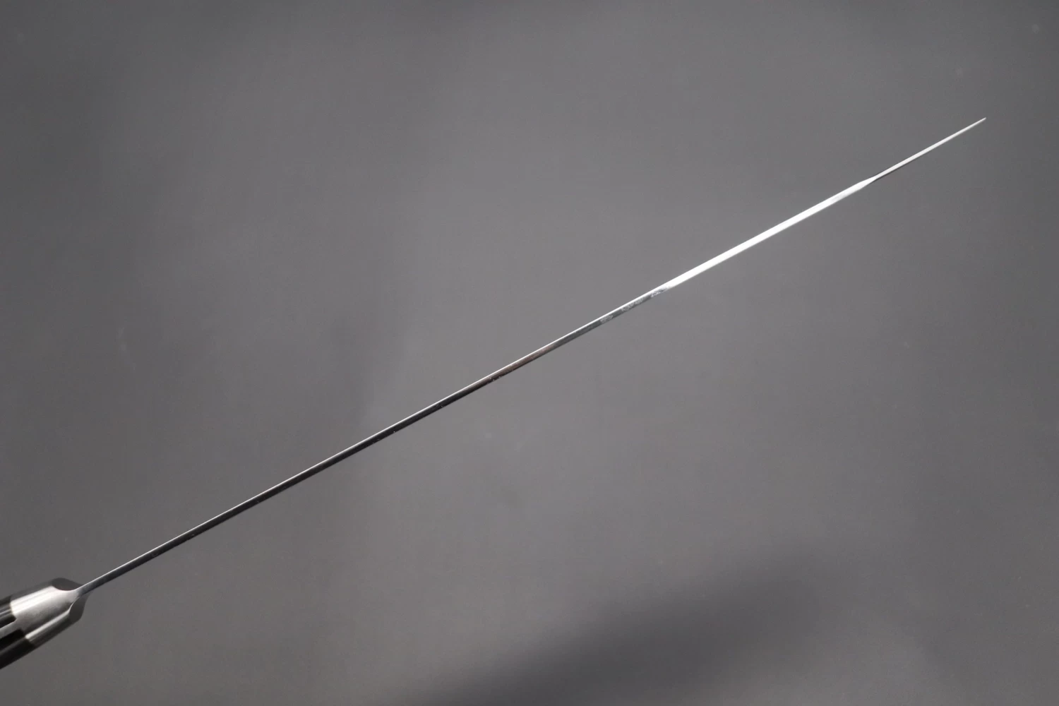 The blade is made of solid CarboNext special high carbon tool steel that is hardened to HRc. 59-61. The knife features superb fit and finish, full tang construction, and comfortable black pakkawood handles. Its thin blade has a slow gradual taper and is finely ground, which results in excellent cutting performance and blade balance.