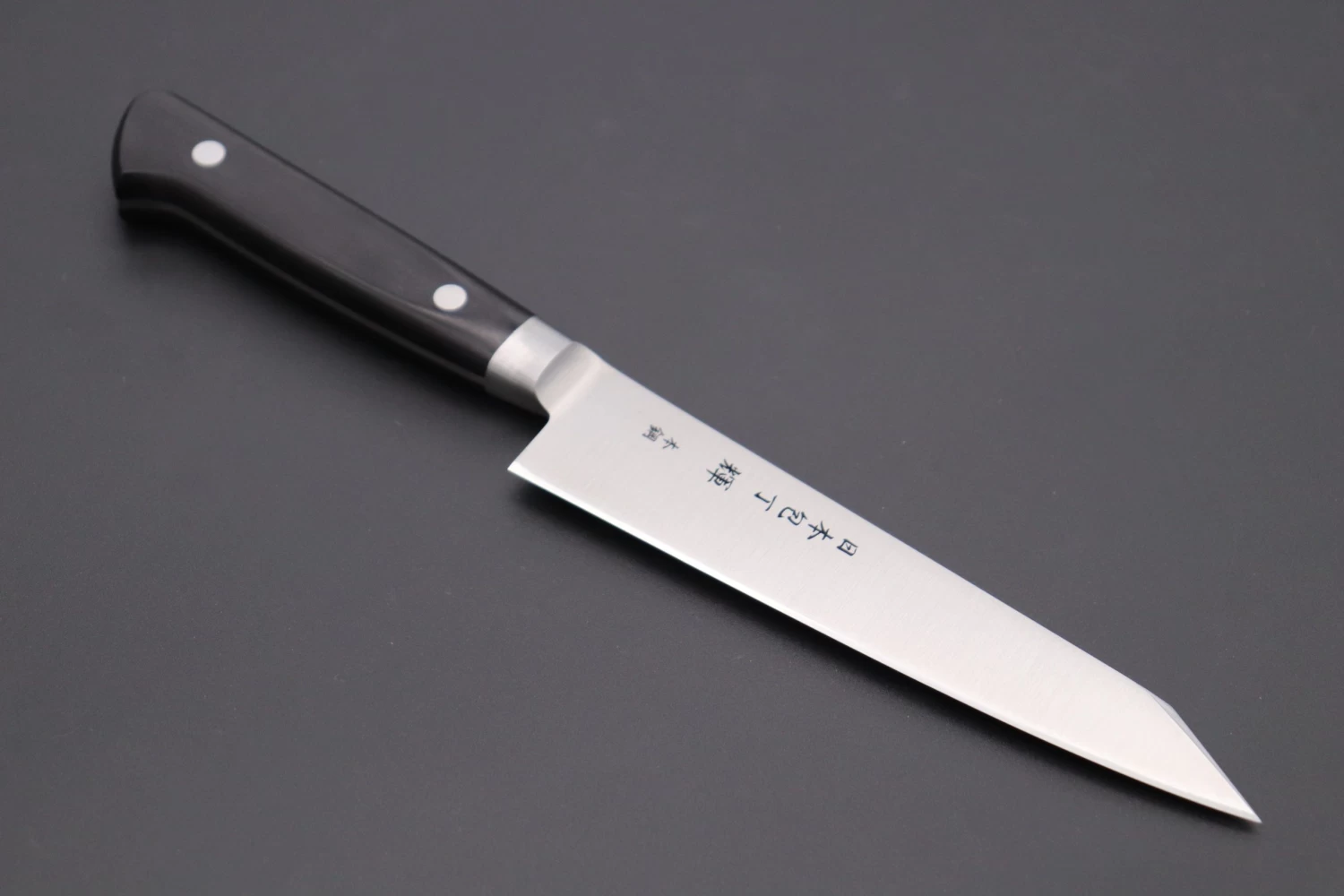 A mainstay of professional Western kitchens, the stylish Kiritsuke-Petty knife is a small general-purpose knife used for peeling, shaping, and slicing fruits and vegetables, chopping herbs, and making garnishes. The compact size and relatively narrow blade of the Petty knife mean that it is very nimble and controllable, thus it is ideal for making precise cuts. It is a very versatile knife that can perform a wide variety of everyday cutting tasks.