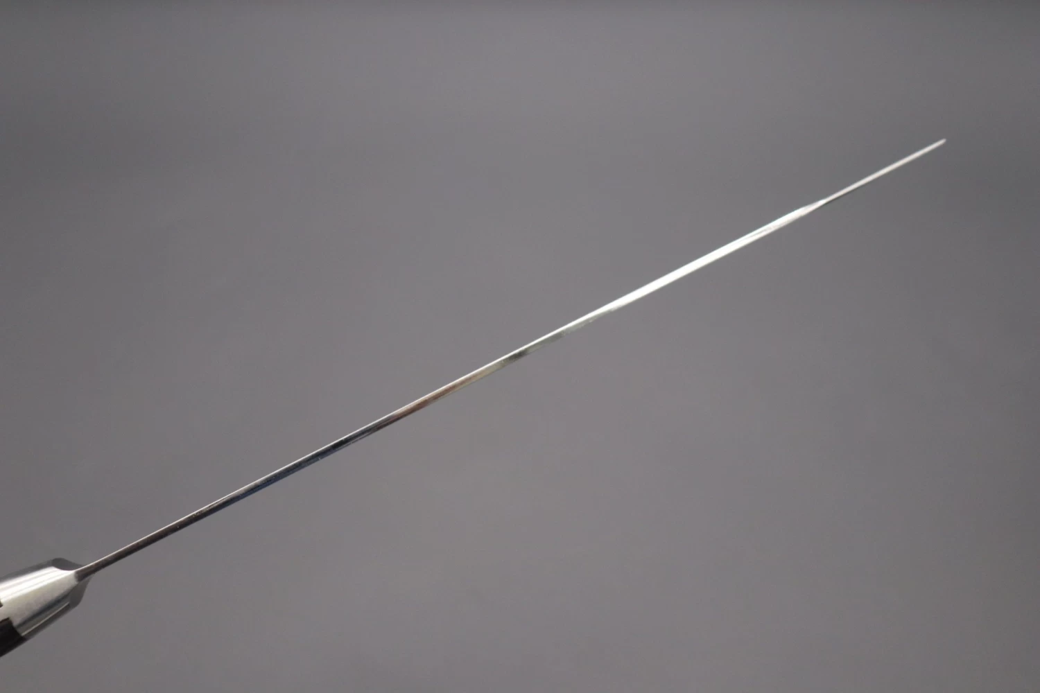 The long, narrow, graceful blade of the Kiritsuke-Sujihiki is particularly useful for trimming away sinew and fat from meat, finely slicing meat or boneless fish, or for filleting and skinning fish. The long blade allows the meat or fish to be cut in one single drawing motion, from heel to tip.