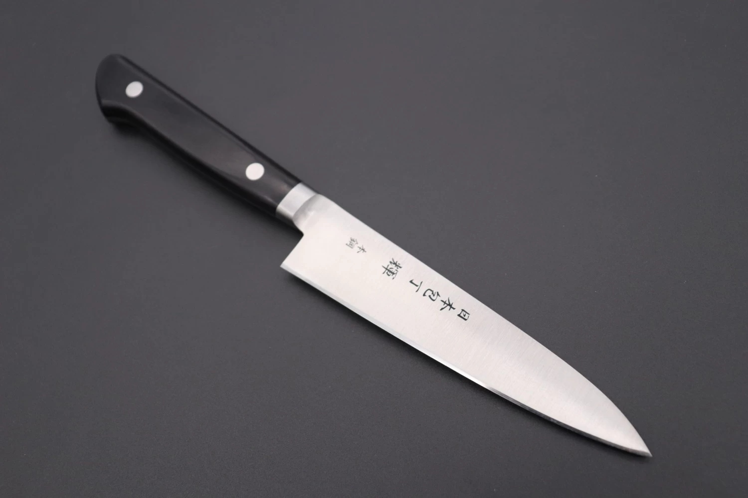 A mainstay of professional Western kitchens, the Petty knife is a small general-purpose knife used for peeling, shaping, and slicing fruits and vegetables, chopping herbs, and making garnishes. The compact size and relatively narrow blade of the Petty knife mean that it is very nimble and controllable, thus it is ideal for making precise cuts.