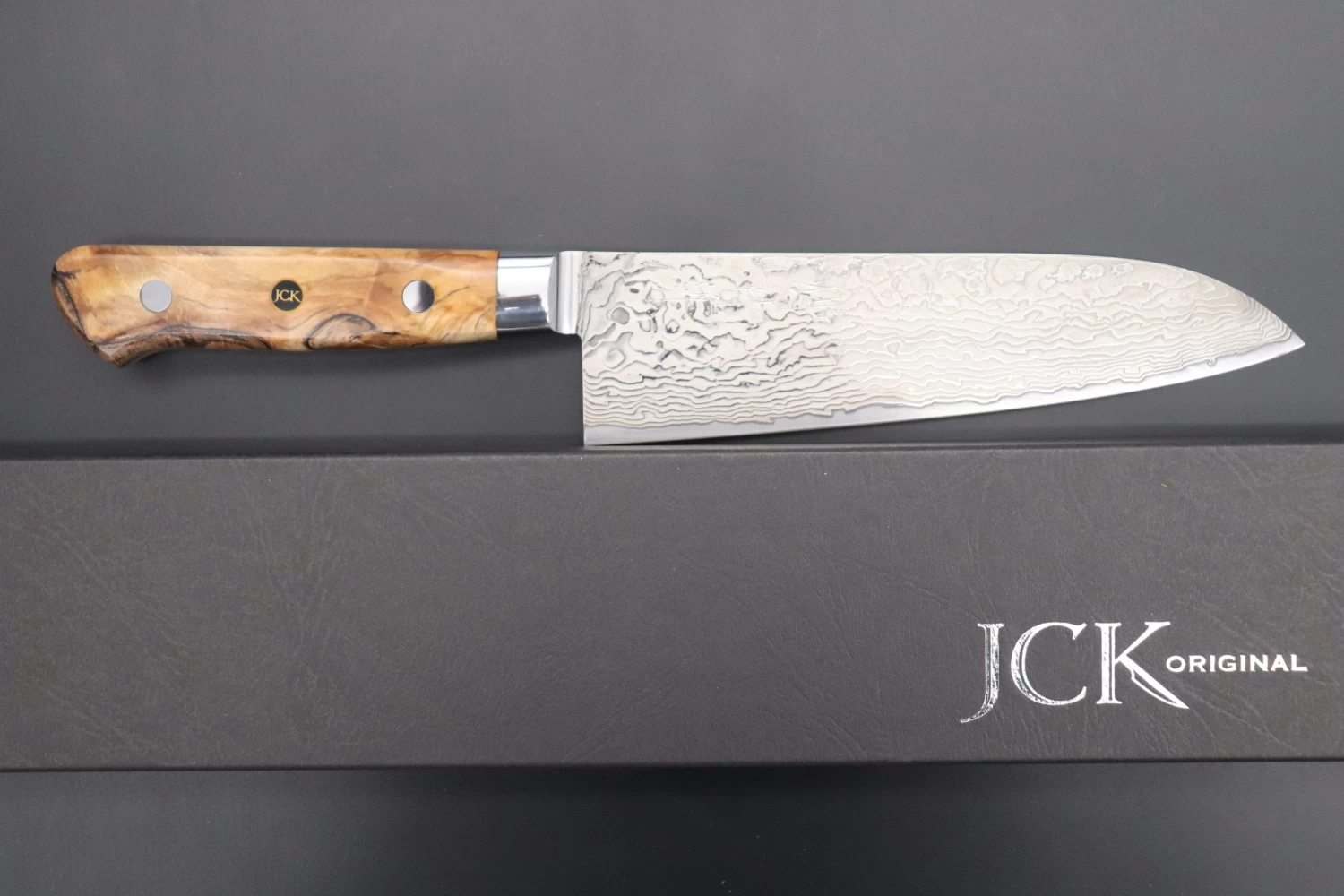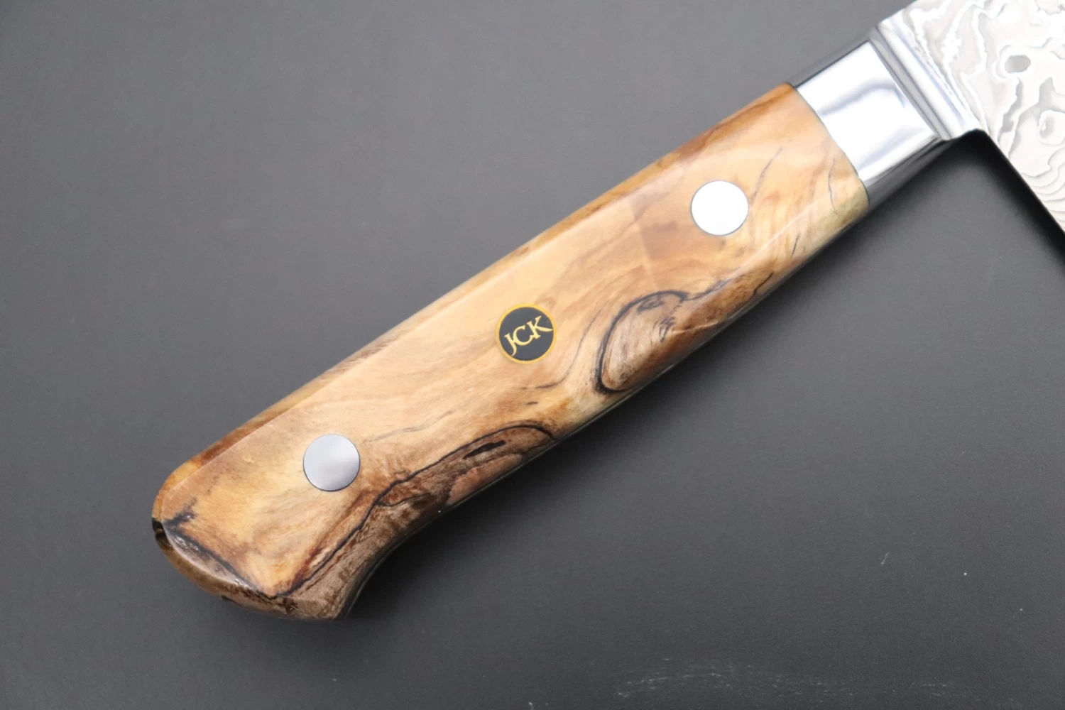 The knives feature full tang construction, premium handle scales, perfectly mirror polished stainless steel bolster and a Handmade “JCK” Mosaic Pin that adds a stylish design accent.