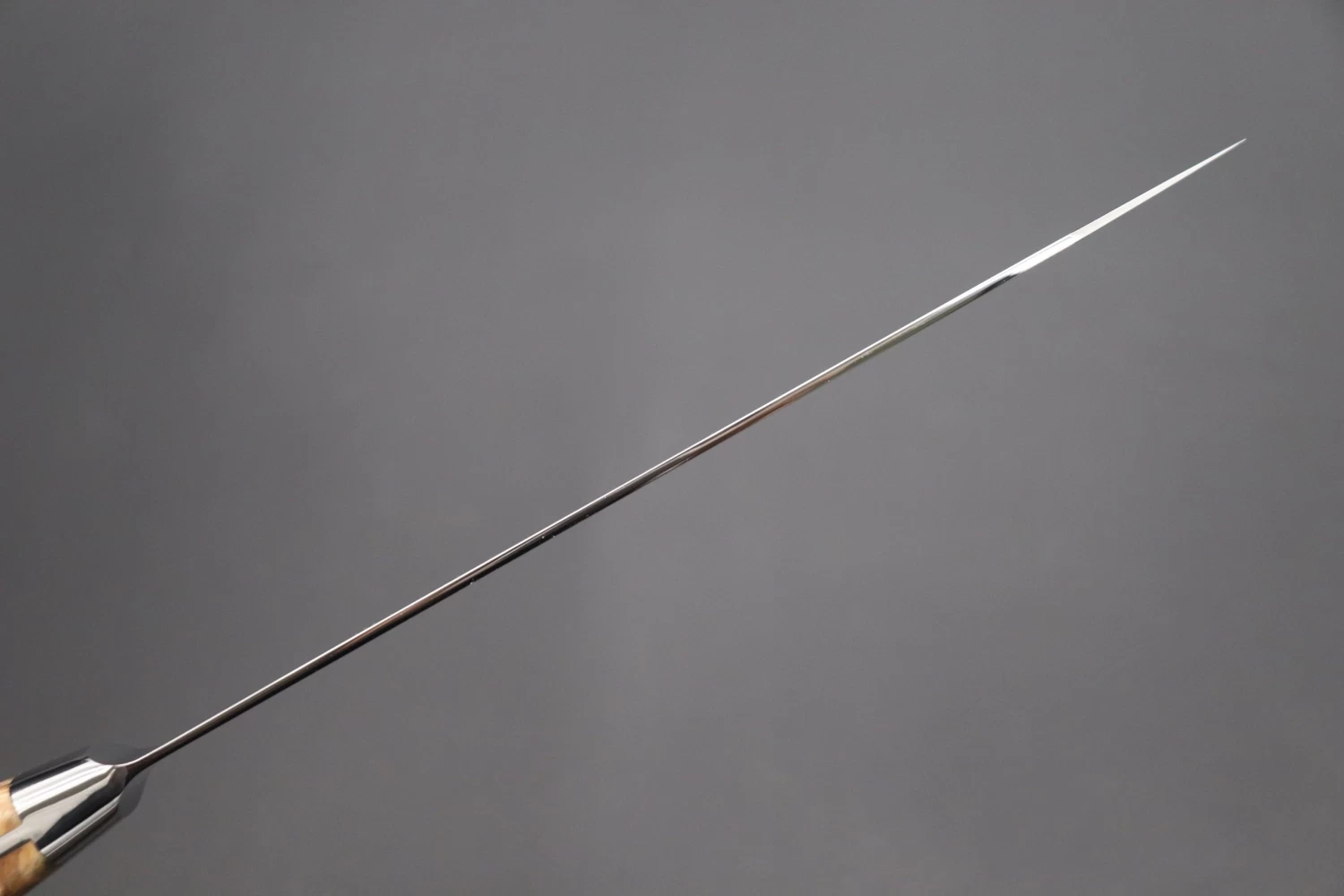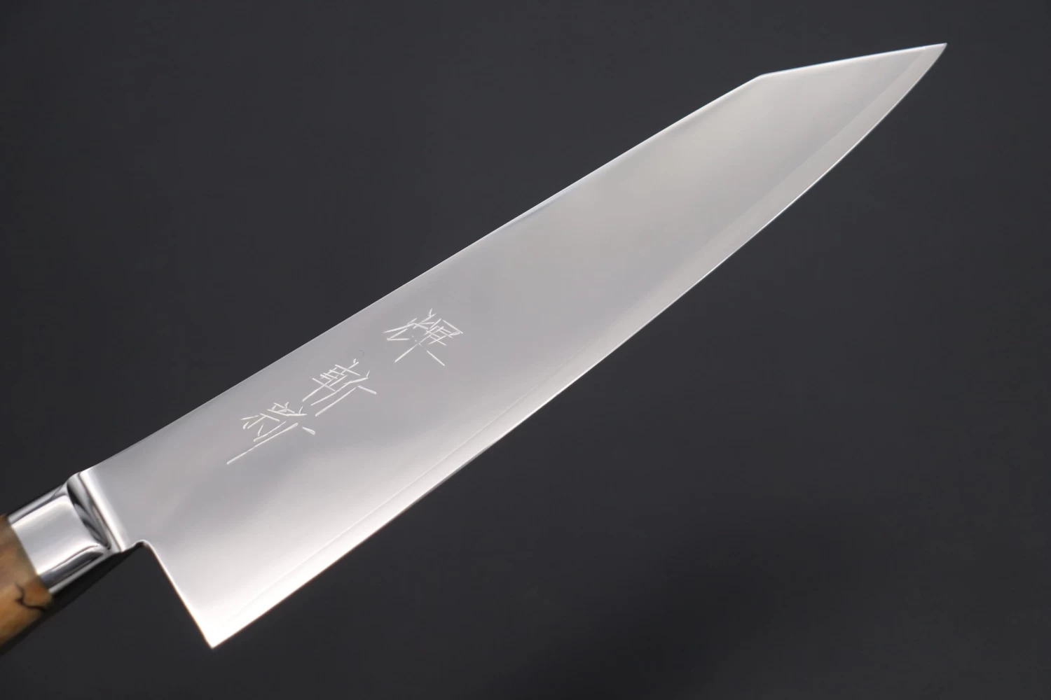 However, we must warn our customers that there is a possibility that the beautiful mirror polished blade can become visibly scratched whilst you are using the knives, or sharpening them. This is obviously undesirable, but the mirror polished blade will remain for many years, especially if it is handled with a little extra care and attention. We hope that your magnificent mirror polished blade will remain vivid and beautiful, and that it will be your special cooking partner for long, long time!