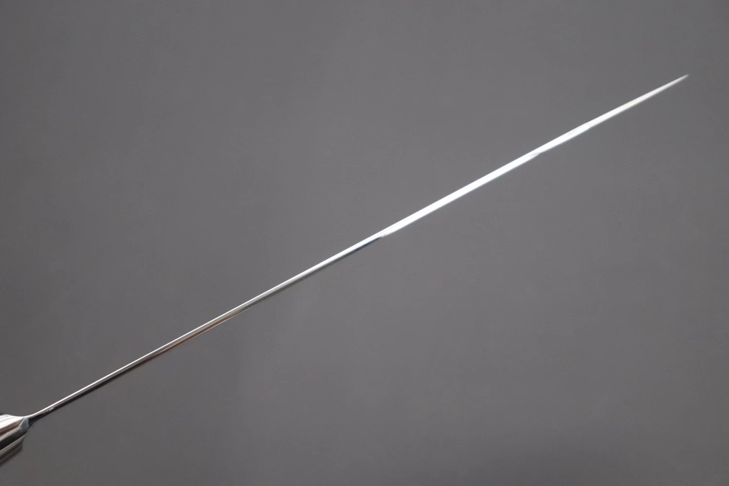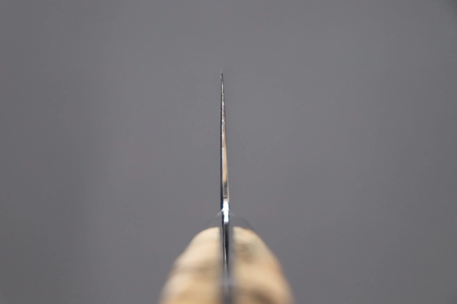 The Kirisuke-Gyuto has a very similar blade profile to the ‘regular’ Gyuto, but it has what is commonly known as a ‘reverse tanto’ tip, or ‘clipped point’, which is very useful for precision cutting. Apart from this difference, the Kirisuke-Gyuto functions in the same way as the ‘plain’ Gyuto knife.