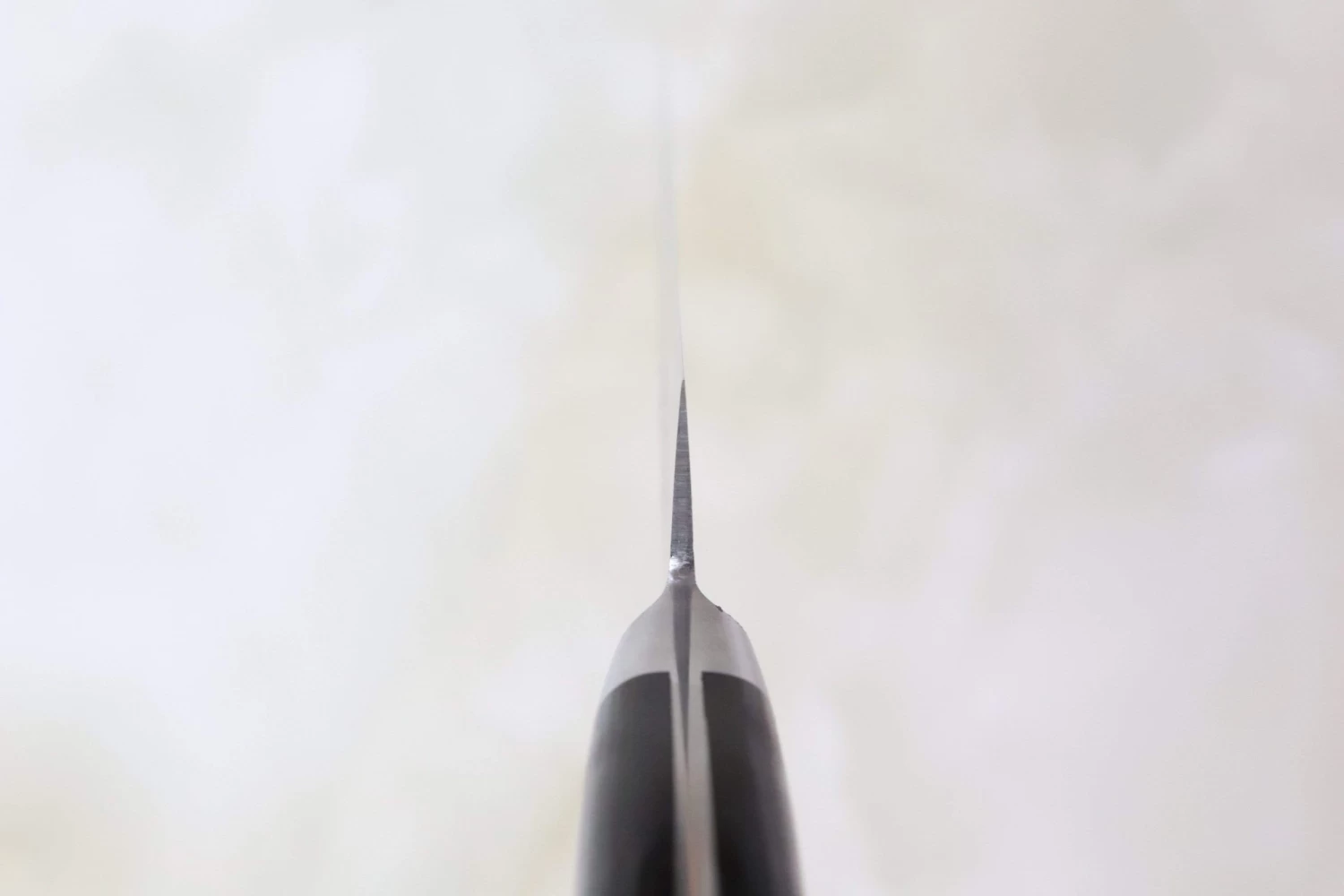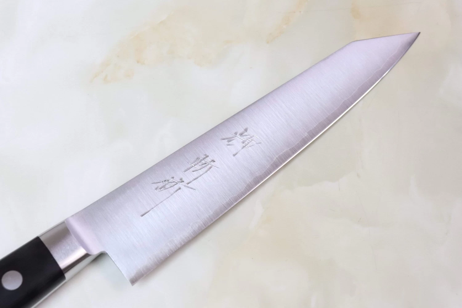 A mainstay of professional Western kitchens, the Kiritsuke-Petty knife is a small general-purpose knife used for peeling, shaping, and slicing fruits and vegetables, chopping herbs, and making garnishes. The compact size and relatively narrow blade of the Petty knife mean that it is very nimble and controllable, thus it is ideal for making precise cuts. It is a very versatile knife that can perform a wide variety of everyday cutting tasks.