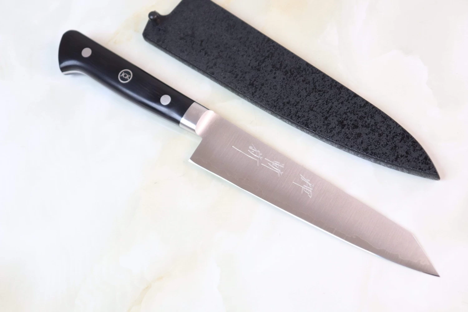 We hope you enjoy these simple, yet stylish and practical, R-2 Kiritsuke knives with Western-style handles. Each knife comes with a matching wooden Saya (Sheath), which has a decorative black lacquer finish.