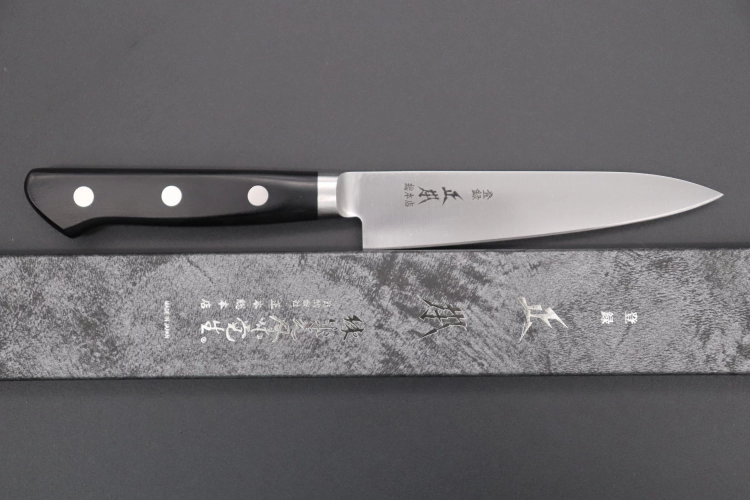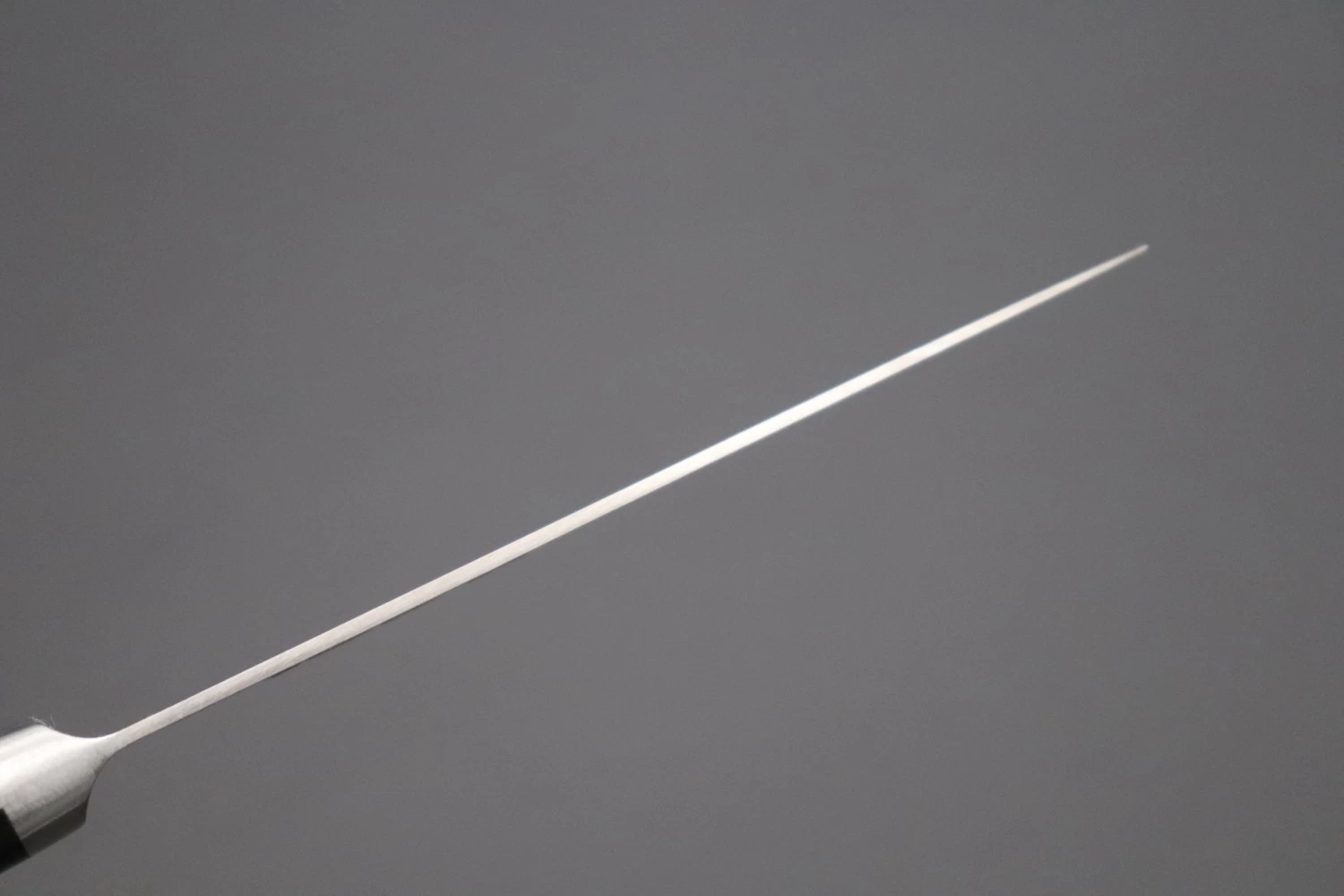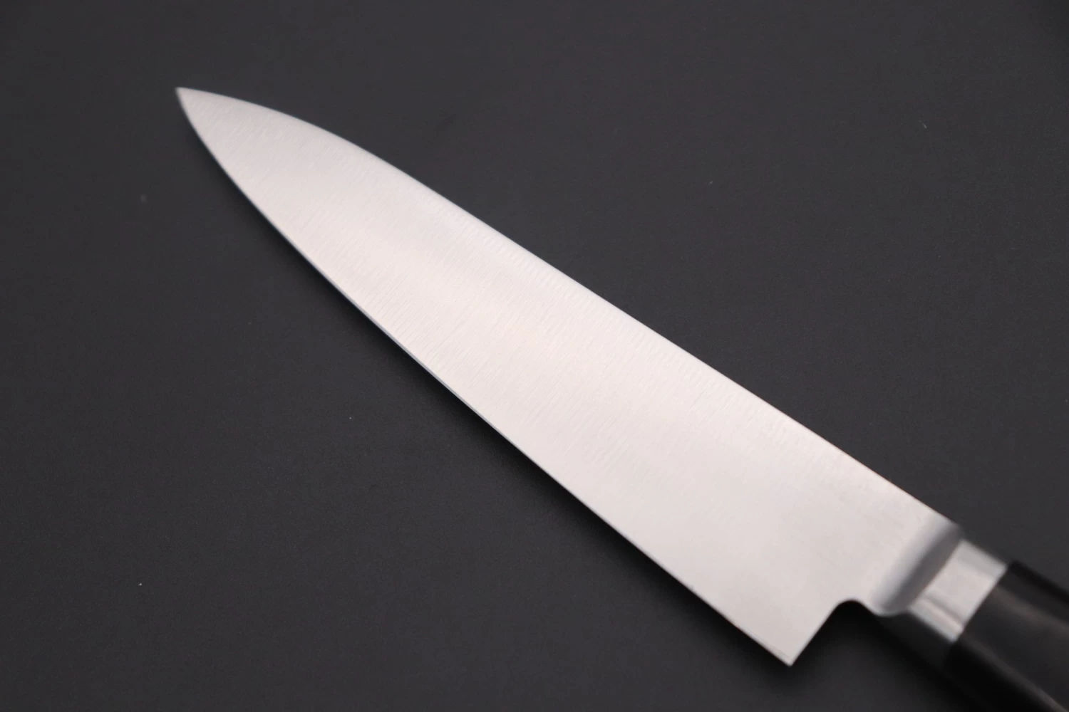 A mainstay of professional Western kitchens, the Petty knife is a small general-purpose knife used for peeling, shaping, and slicing fruits and vegetables, chopping herbs, and making garnishes. The compact size and relatively narrow blade of the Petty knife mean that it is very nimble and controllable, thus it is ideal for making precise cuts.