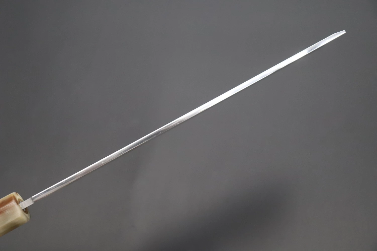 Whilst the hardness, edge retention and sharpness of Masamoto’s Ao-ko Honyaki knife is truly remarkable, they are also difficult to sharpen and can be easily damaged by incorrect use. In Japan, they are normally only used by very experienced top-star Chefs, and similarly, we only recommend them for people who have extensive experience with traditional Japanese knives, or to knife collectors who wish to keep them in perfect, unused condition.