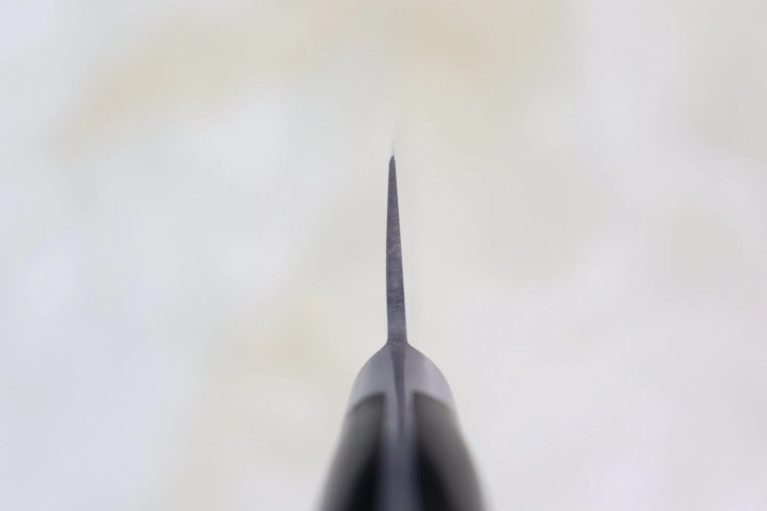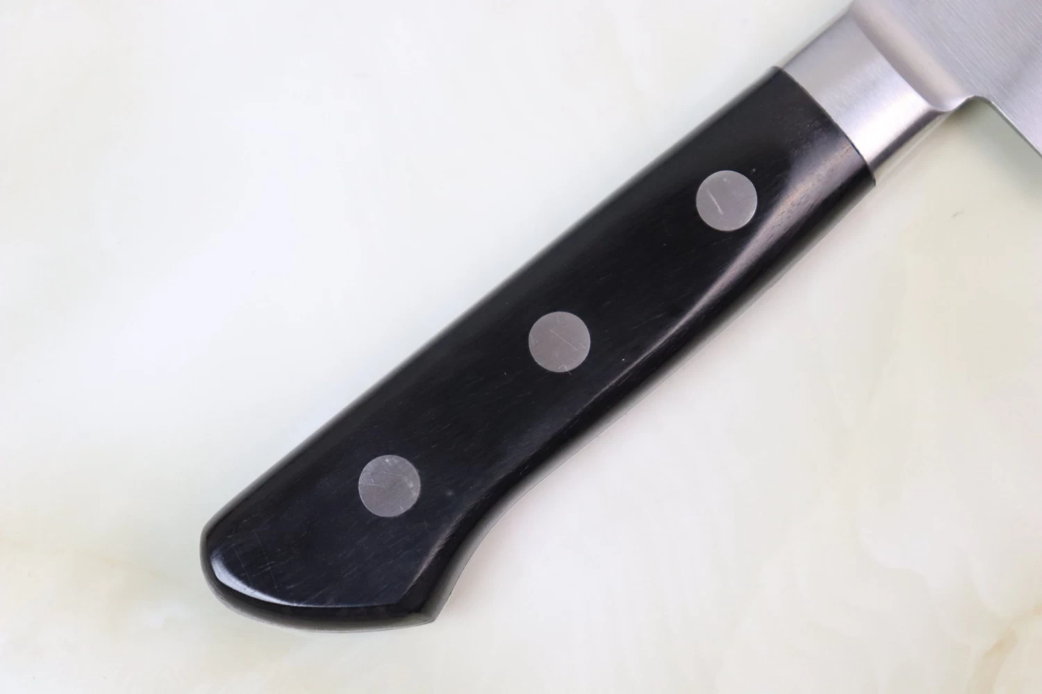 Masamoto HC Series knife features full tang construction, water-resistant black pakkawood (Resin-stabilized wood composite) handle scales and a seamlessly forge-welded stainless steel bolster for extra durability and corrosion-resistance. The handle scales and bolster have also been rounded-off to allow a comfortable, secure grip.