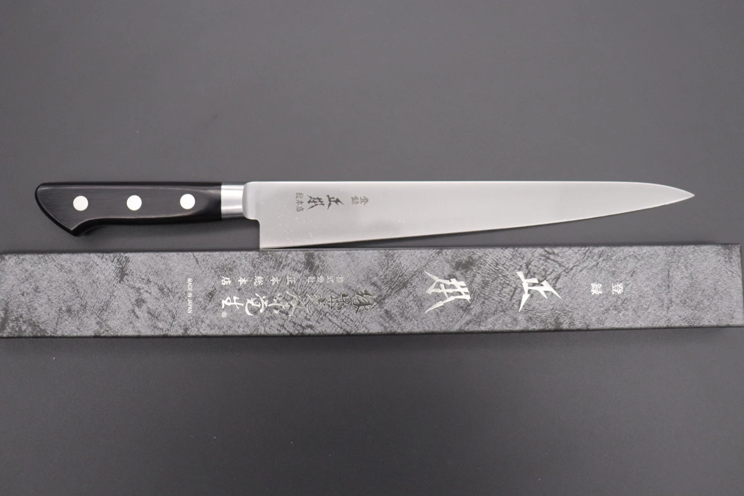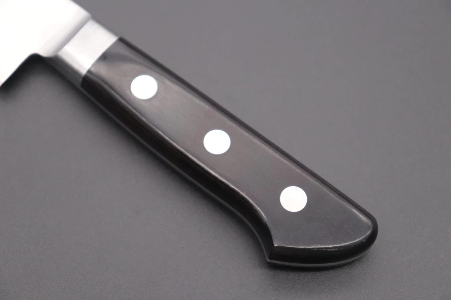 Masamoto HC Series knife features full tang construction, water-resistant black pakkawood (Resin-stabilized wood composite) handle scales and a seamlessly forge-welded stainless steel bolster for extra durability and corrosion-resistance. The handle scales and bolster have also been rounded-off to allow a comfortable, secure grip.