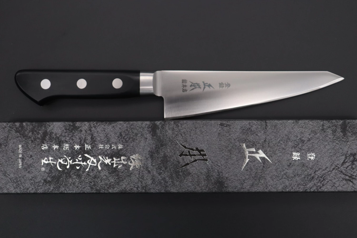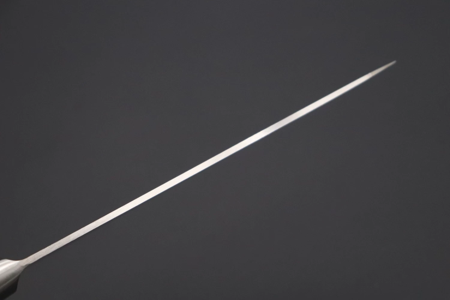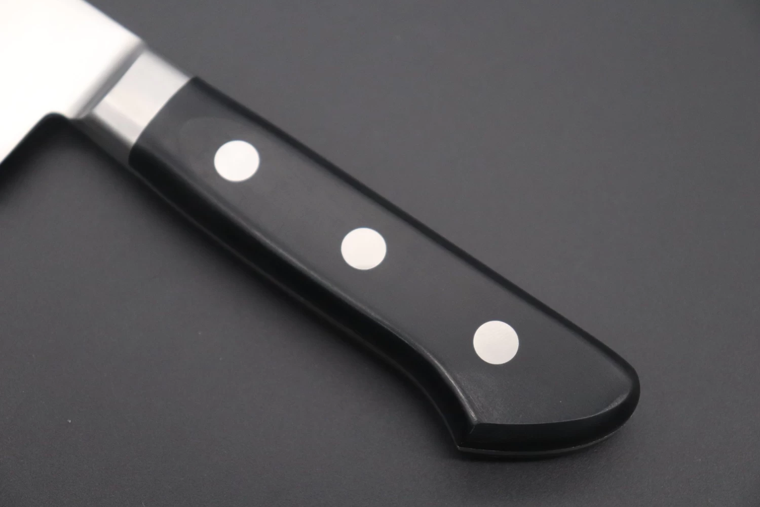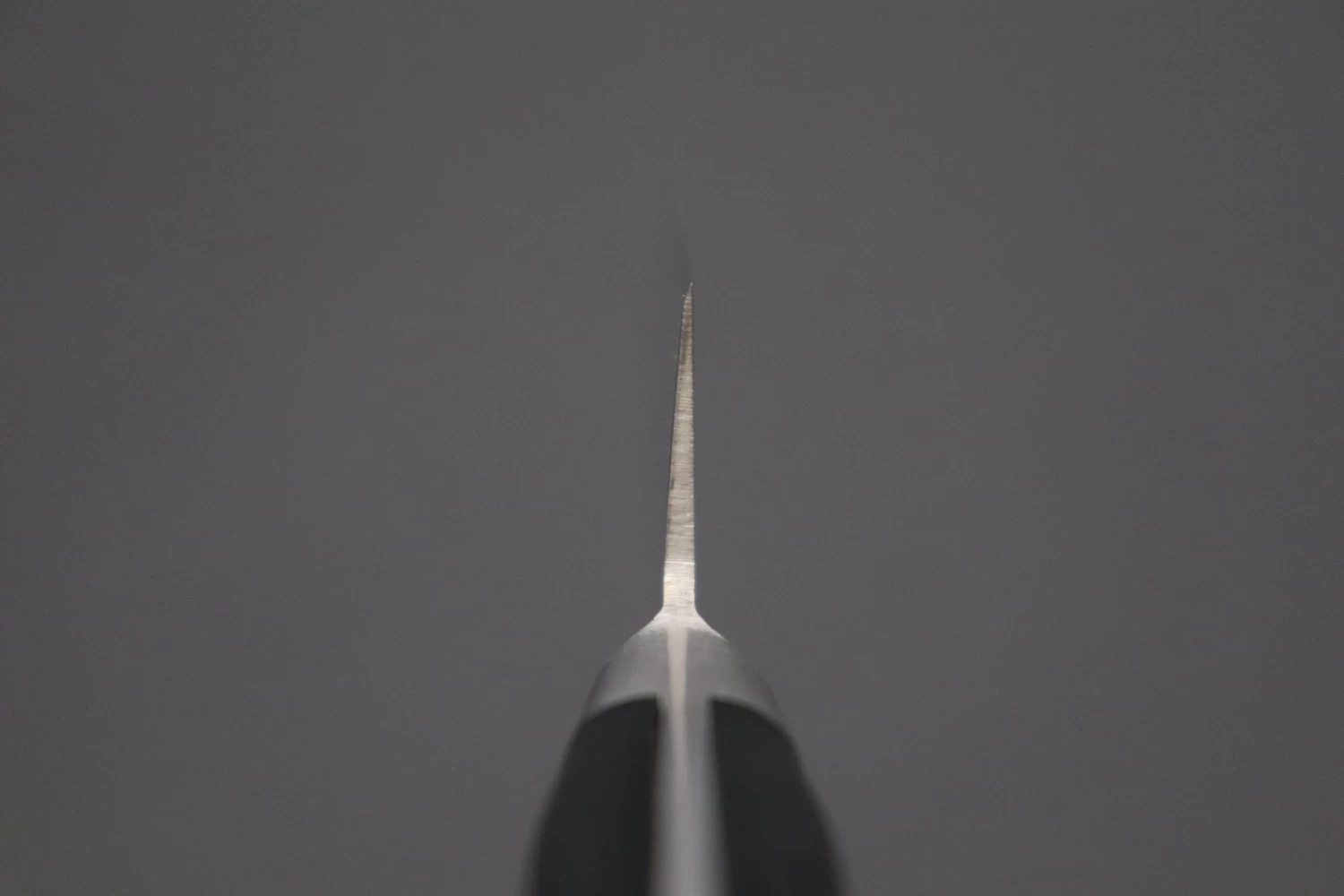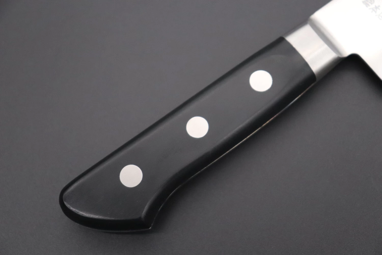 The Masamoto VG Series Knife is a best-selling range of Western-style kitchen knives. It has blade made from Masamoto’s high carbon stainless steel “Hyper Molybdenum Vanadium stainless steel” (HRc. 58-59), which is corrosion-resistant and has very good sharpness and edge retention. Its thin blade geometry provides superb cutting performance and it is supplied fully sharpened, so the Masamoto knife can be used straight from the box.