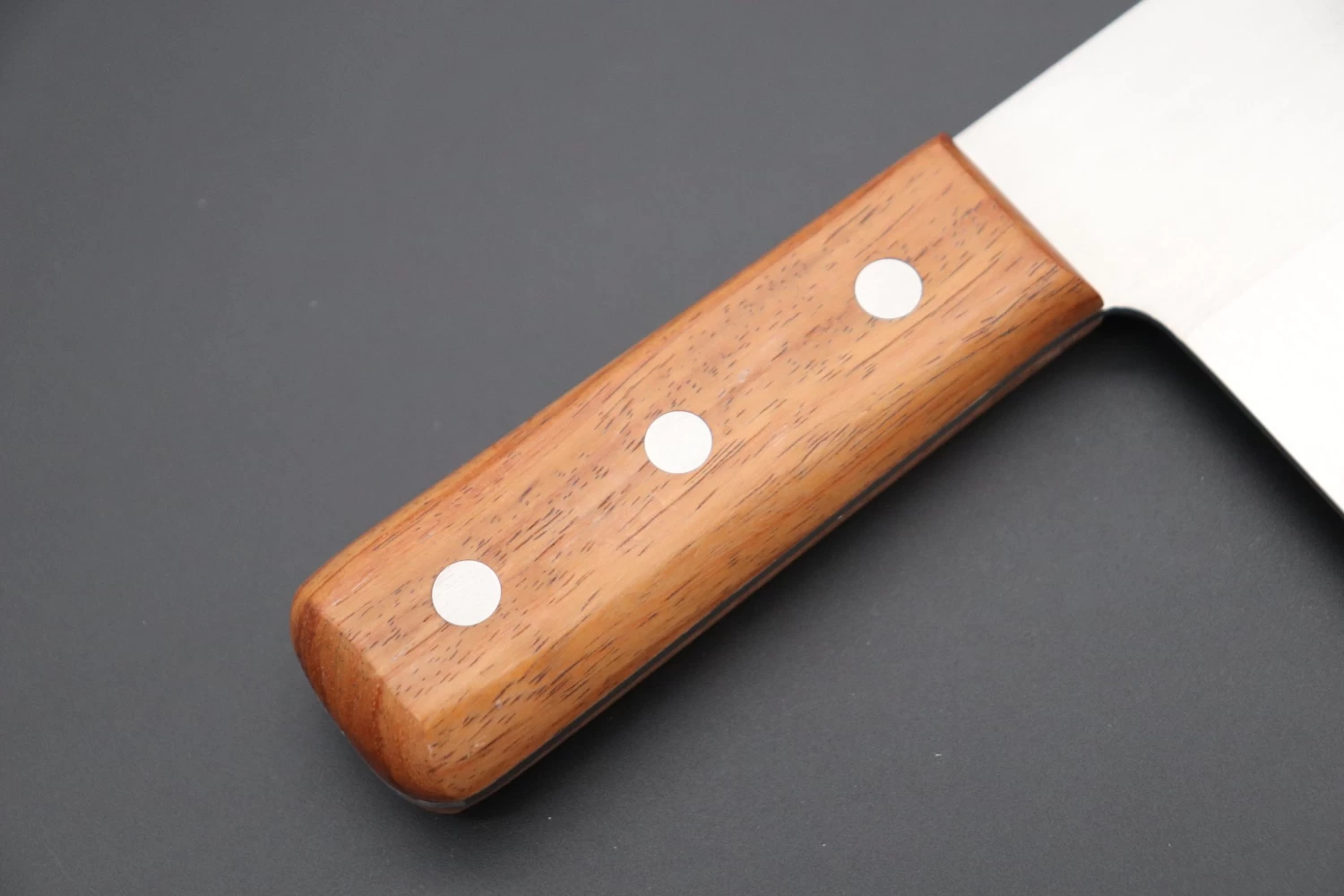 The Chinese Cleaver is a highly versatile general-purpose kitchen knife that can be used to slice, chop, mince, scrape, and even crush ingredients. The tall blade of the Chinese Cleaver enables it to be safely guided with the knuckles of your free hand when ‘tap chopping’, ‘push cutting’, or ‘pull cutting’. This makes it possible to cut large fruit and vegetables, such as cabbages, easily and safely.