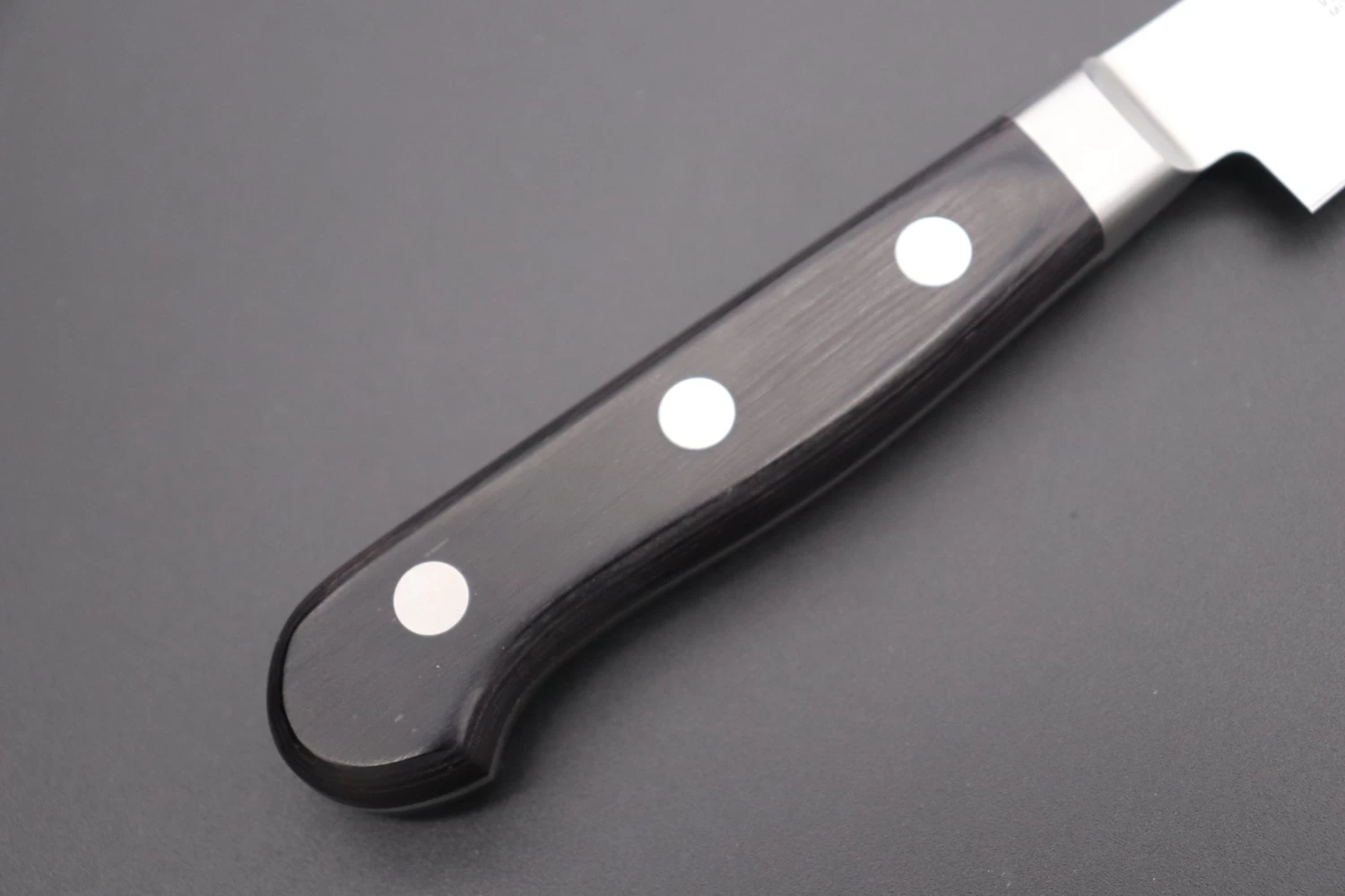 Misono uses “High 16 Chromium and Molybdenum Stainless Steel” (HRc. 58-59), which offers superior durability, rust resistance and ease of sharpening than standard Molybdenum stainless steels.