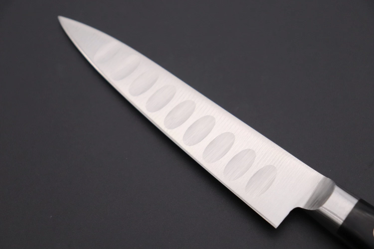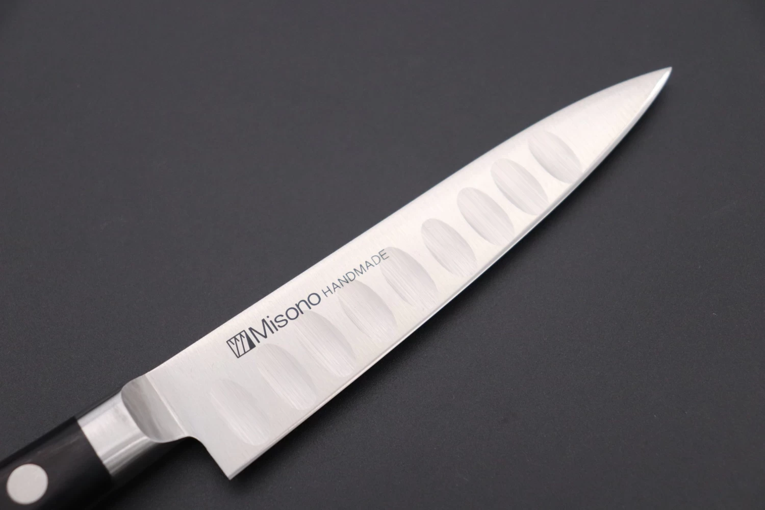 This rare, upgraded versions of the Misono Molybdenum Steel Series knife features unique oval dimples ground in to the blade. The oval dimples help to prevent food from sticking to the blade during cutting and also reduce friction, creating a smooth and effortless cutting experience.