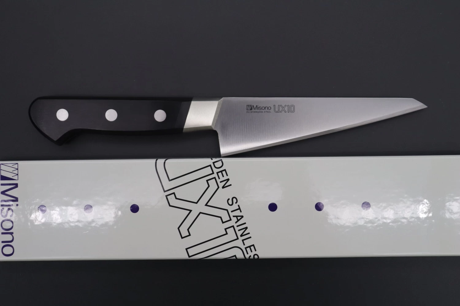 Misono craftsmen make extra hand sharpening steps by whetstone for all of UX10 Series knives. You can experience extreme sharpness and high cutting performance straight from the box!
