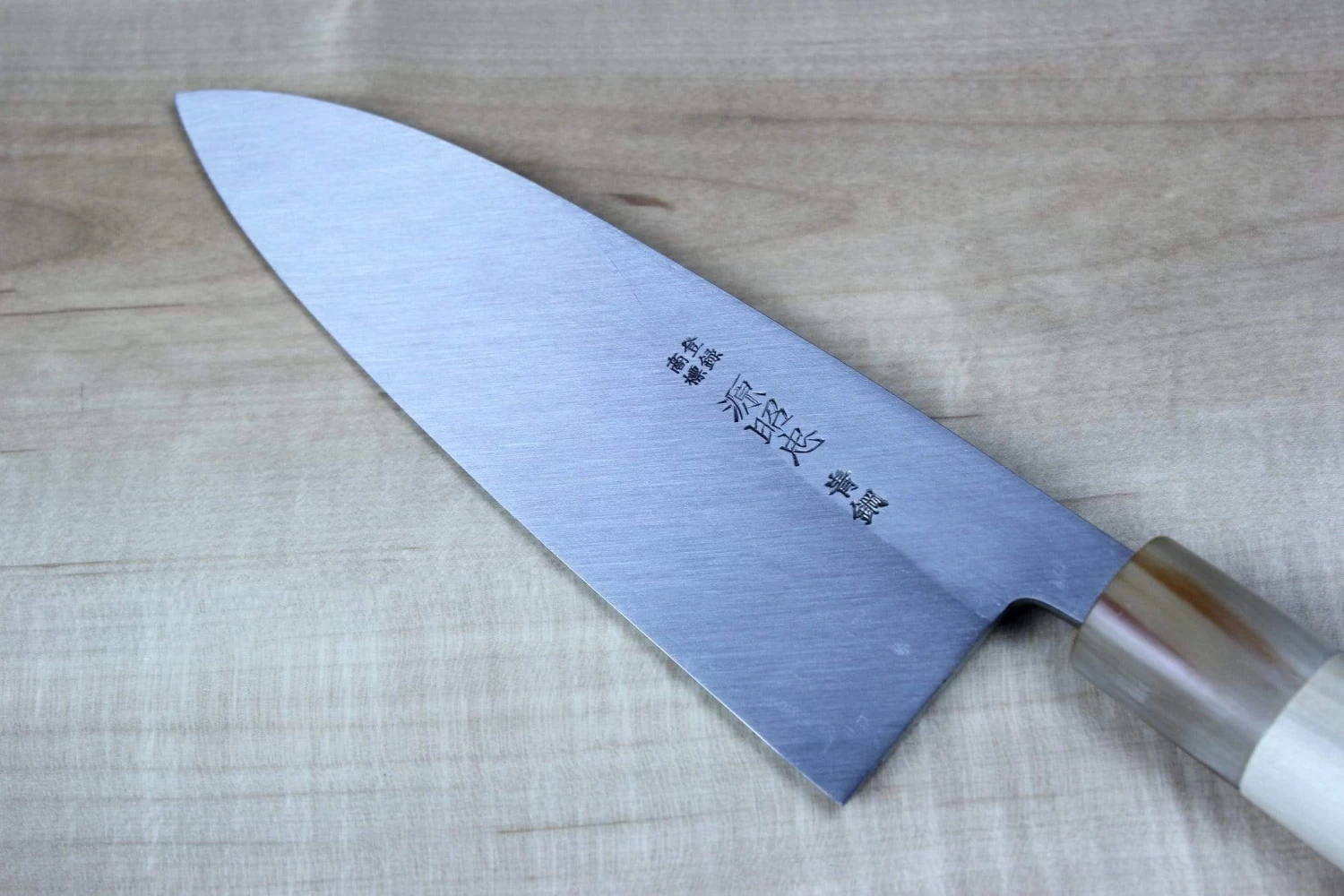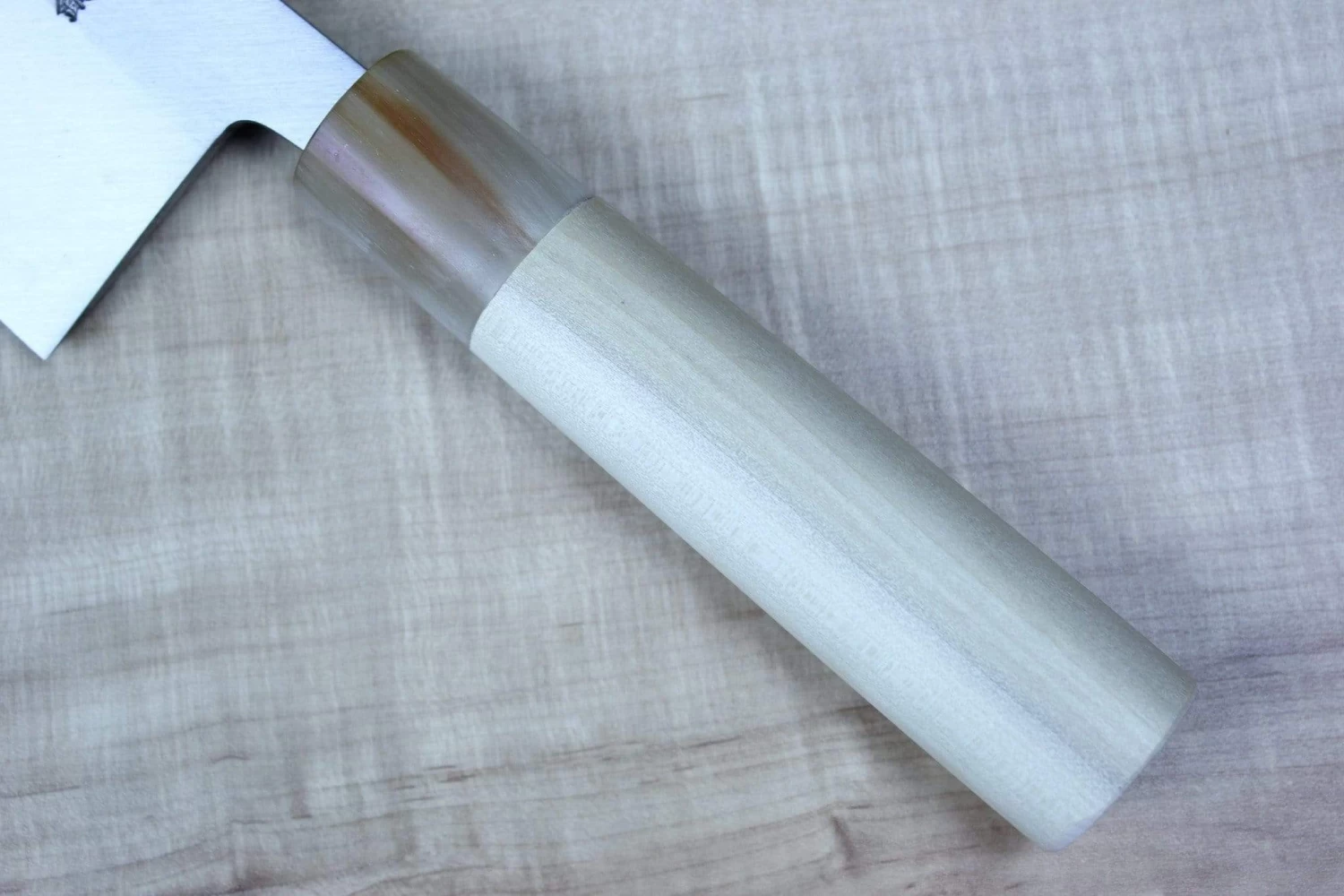 Unfortunately, Mizuno Tanrenjo and most other knife makers are now struggling to find the raw materials to make White or Marbled Water Buffalo Horn Ferrules for their knife handles.