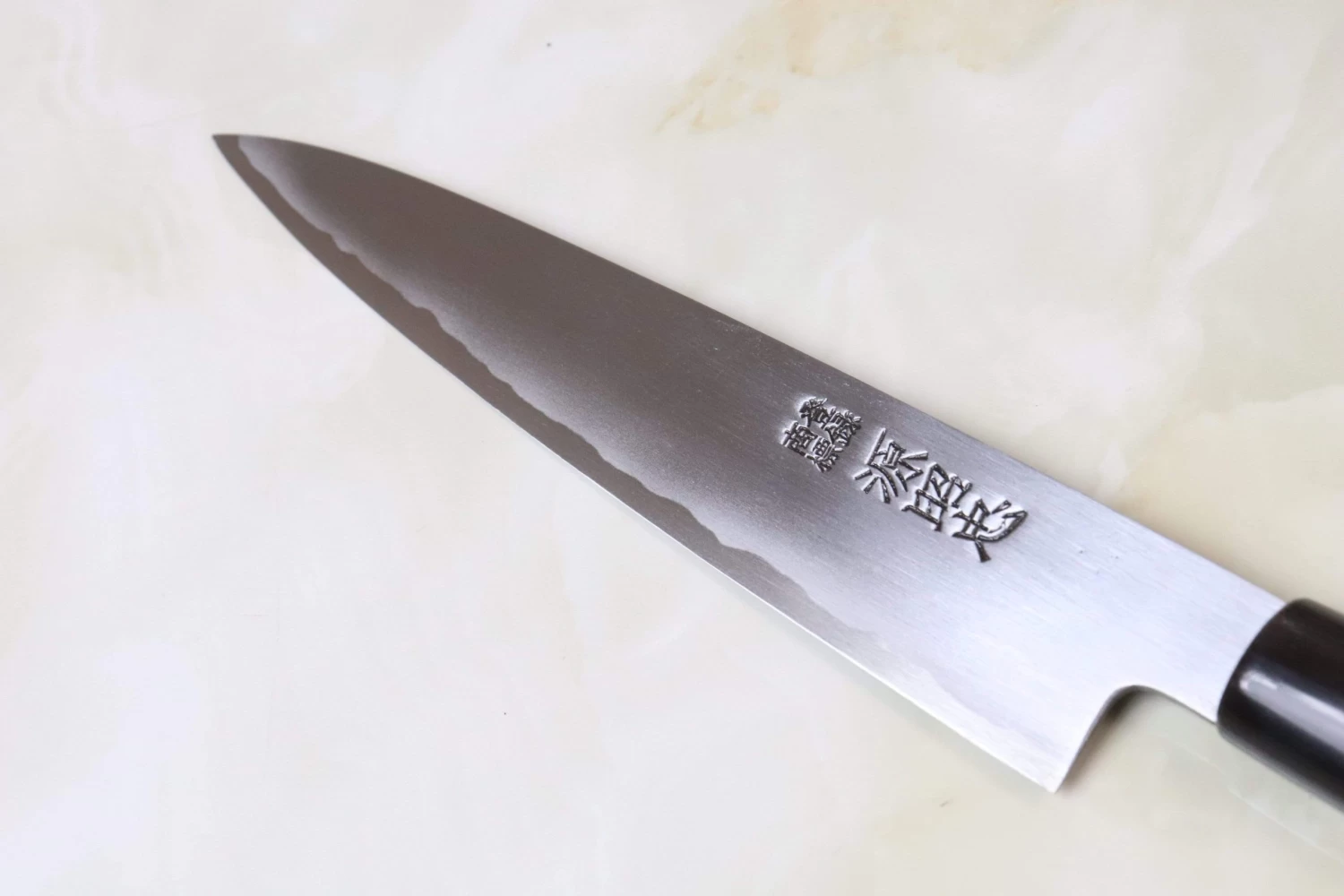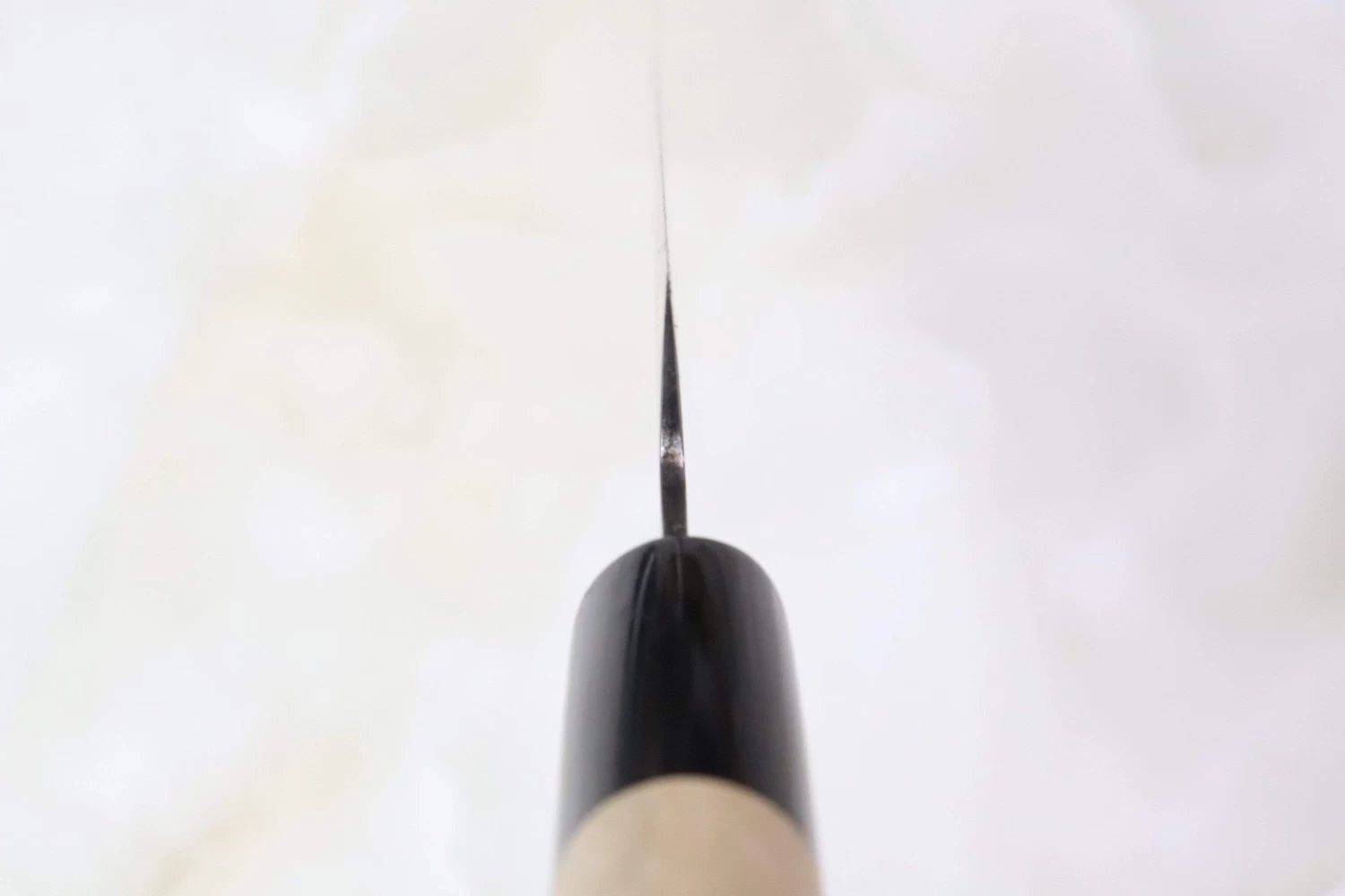 Mizuno Tanrenjo Akitada Hon Kasumi White Steel No.2 Wa Petty knife is completely hand sharpened, polished and finished by especially skilled artisans, which results in extra edge sharpness and a more refined level of finish.