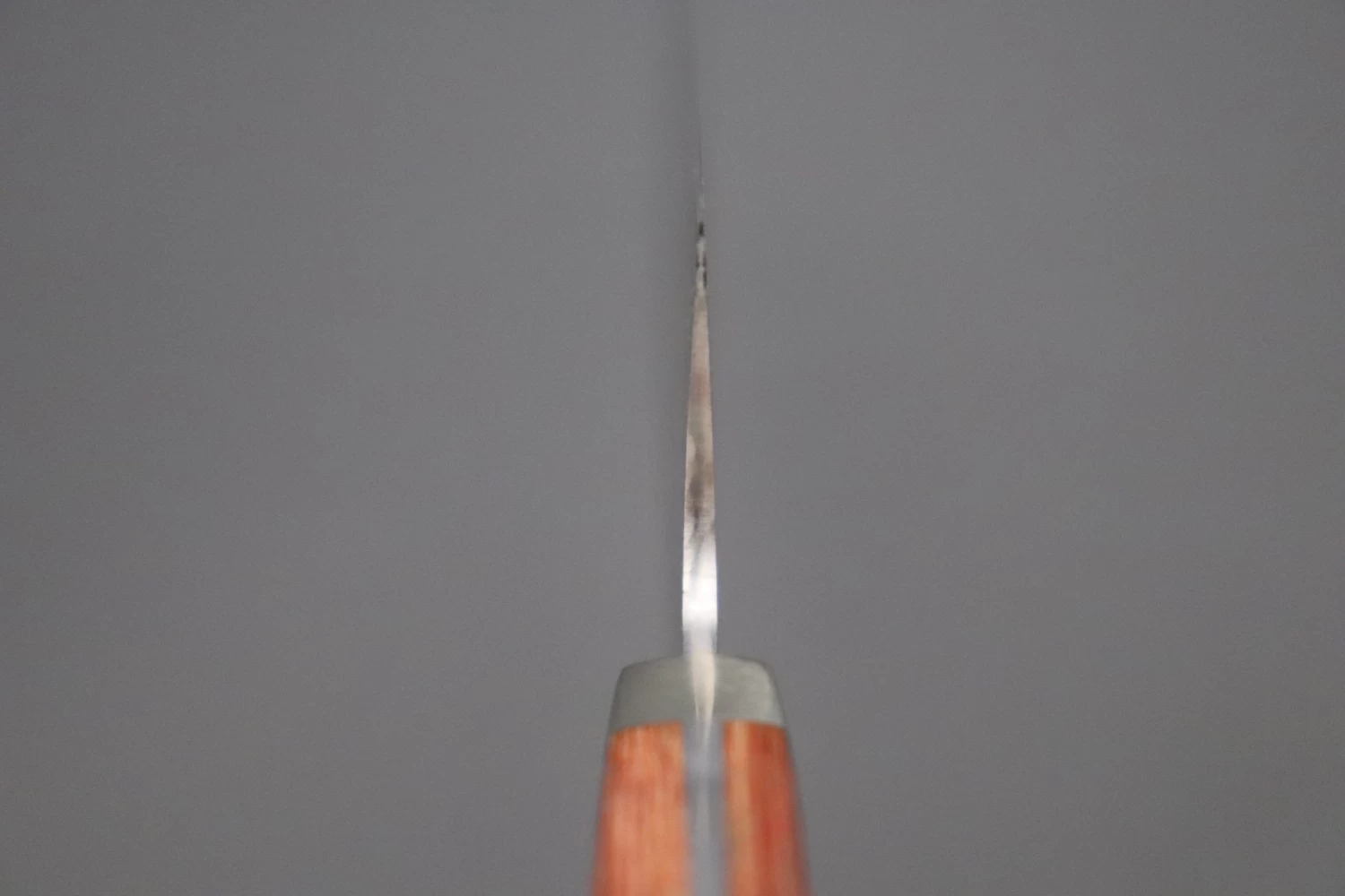 The tall blade and rounded nose / tip of the Santoku make it a versatile knife that is well suited to cutting meat, fish, or vegetables; Hence it’s name, which literally means “Three-purpose”. The Santoku is often recommended as a multi-purpose kitchen knife.