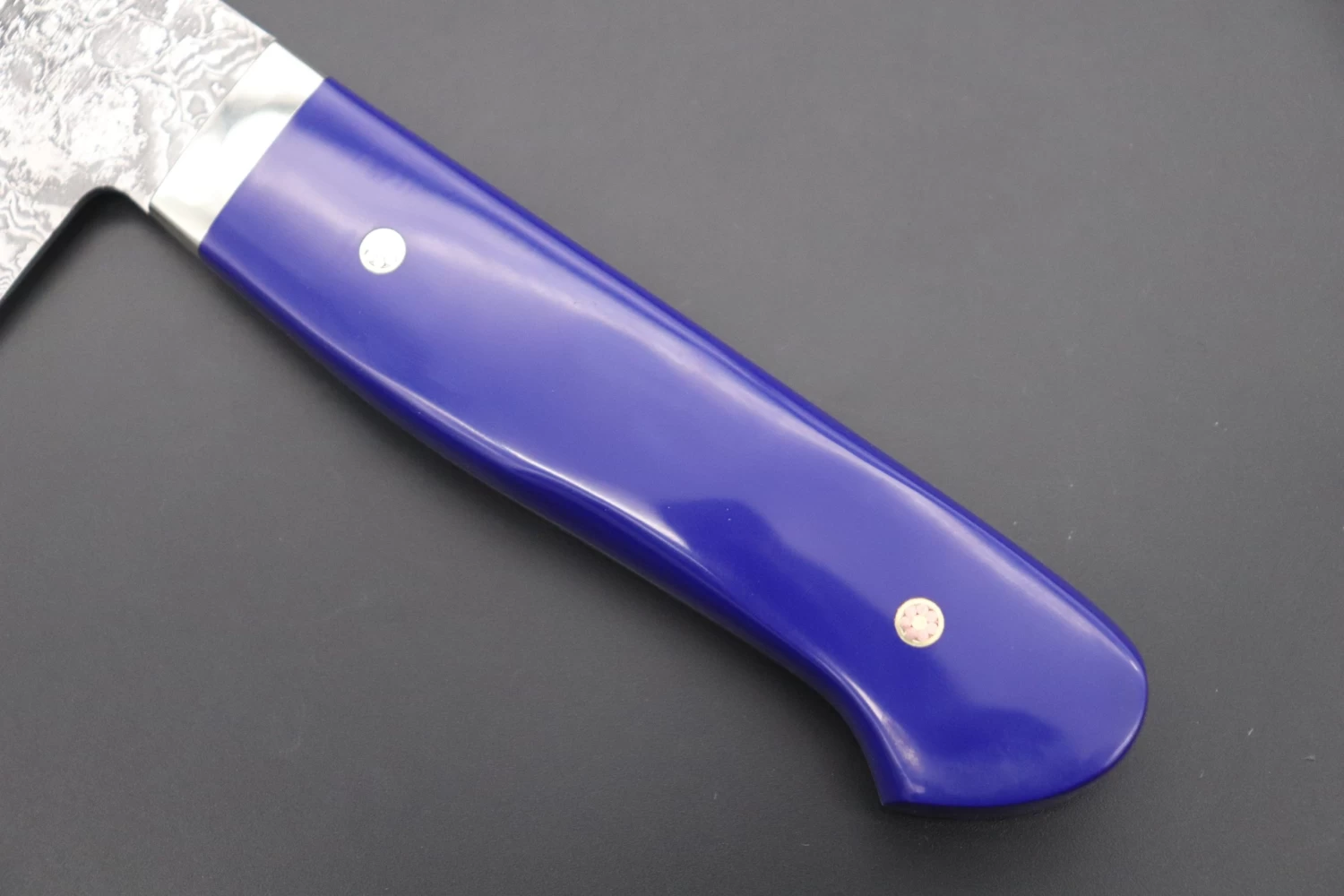 As seen on other expensive full tang custom knives, Mr. Itou hand tapers the blade tang in order to reduce weight and to perfectly balance the blade and handle. He contours and polishes the handle to ensure a perfect grip and an attractive finish. This knife comes with beautiful Lapis Lazuri Gem-Composite Stone Handle.