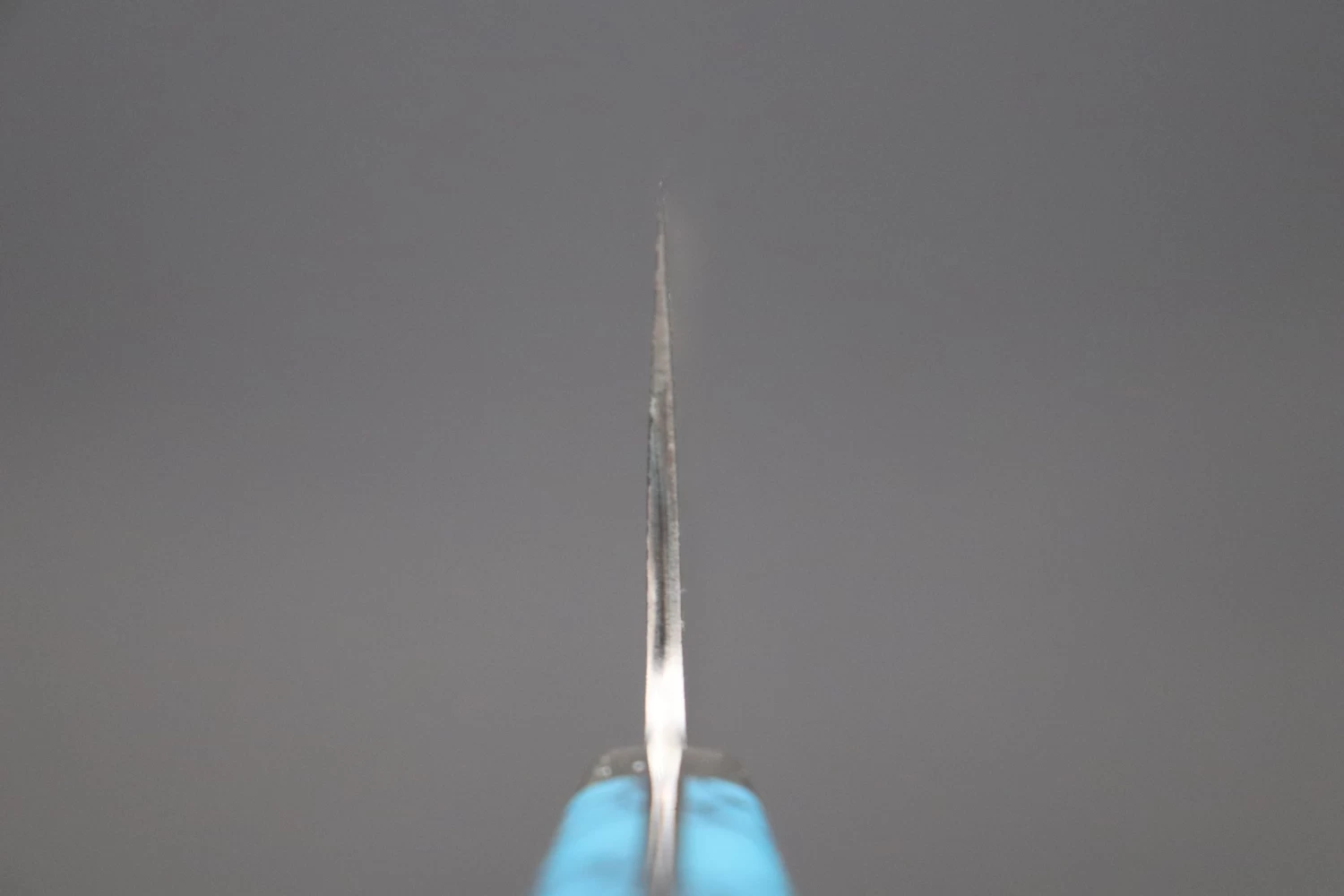 As seen on other expensive full tang custom knives, Mr. Itou hand tapers the blade tang in order to reduce weight and to perfectly balance the blade and handle. He contours and polishes the handle to ensure a perfect grip and an attractive finish.