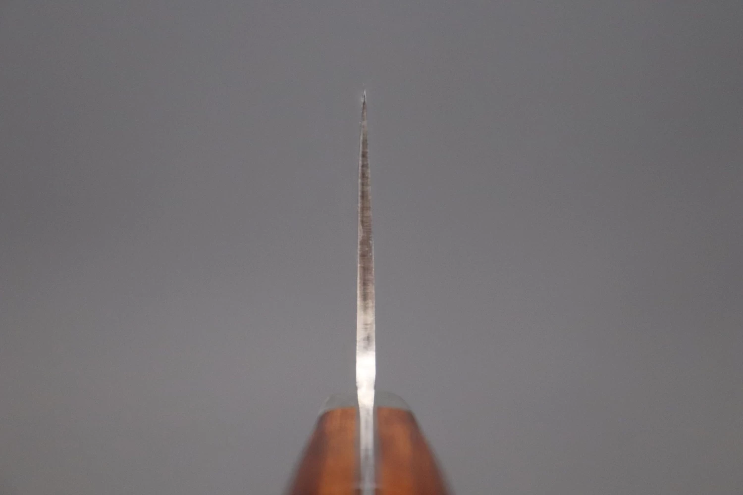 As seen on other expensive full tang custom knives, Mr. Itou hand tapers the blade tang in order to reduce weight and to perfectly balance the blade and handle. He contours and polishes the handle to ensure a perfect grip and an attractive finish.