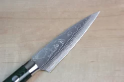 Takeshi Saji VG-10 Custom Damascus Wild Series Paring 90mm (3.5 Inch, Green Linen Micarta Handle)
