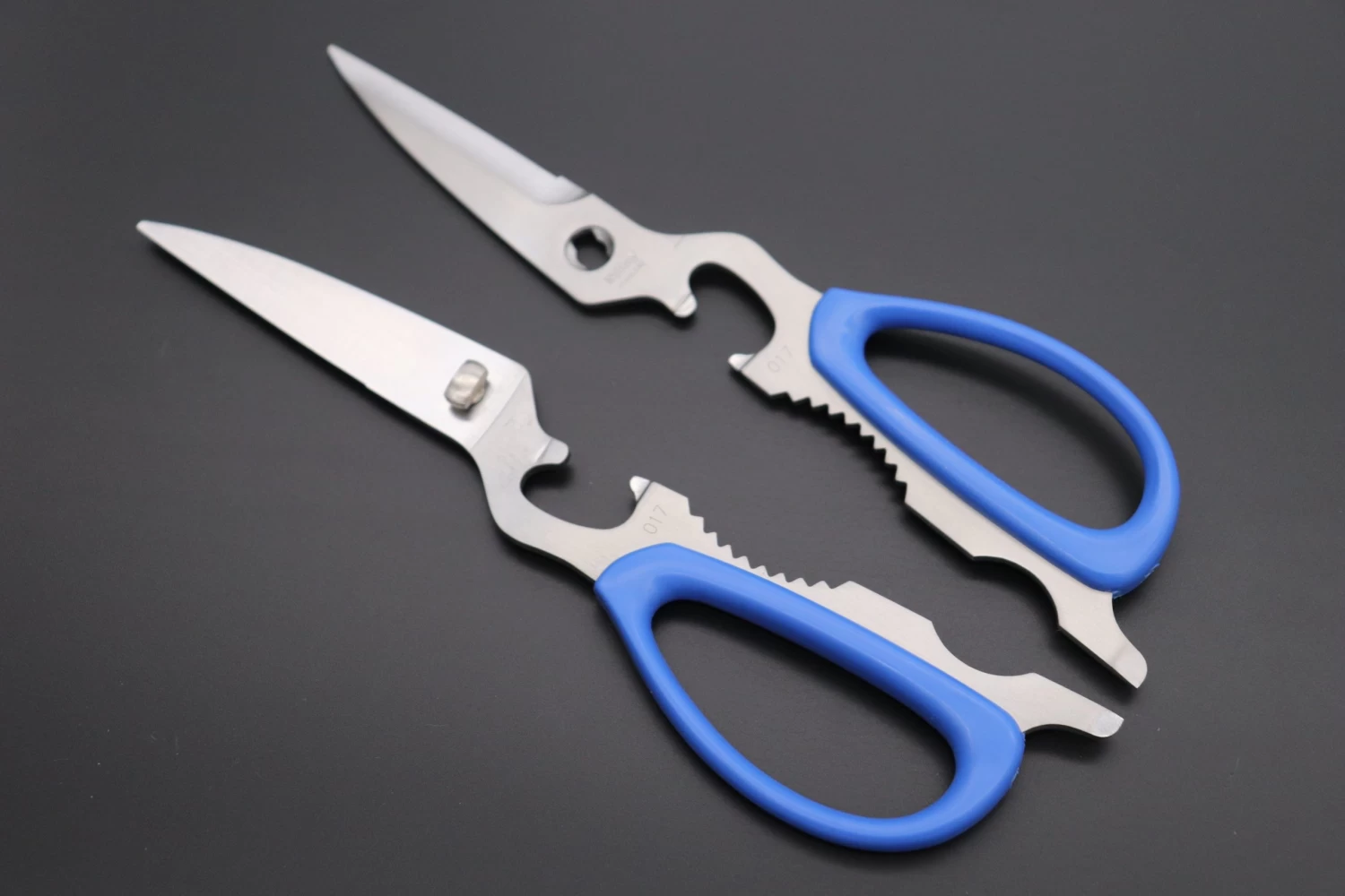 The handle loops are covered with a special fresh Blue colored resin that is comfortable, durable, heat-resistant and easy to clean. These SILKY Shears also include an integrated Can & Bottle Opener (Bottle Cap Lifter) and Nutcracker.