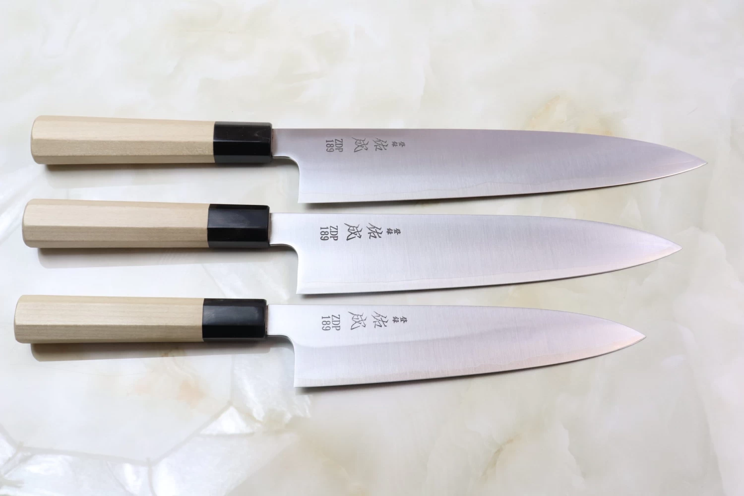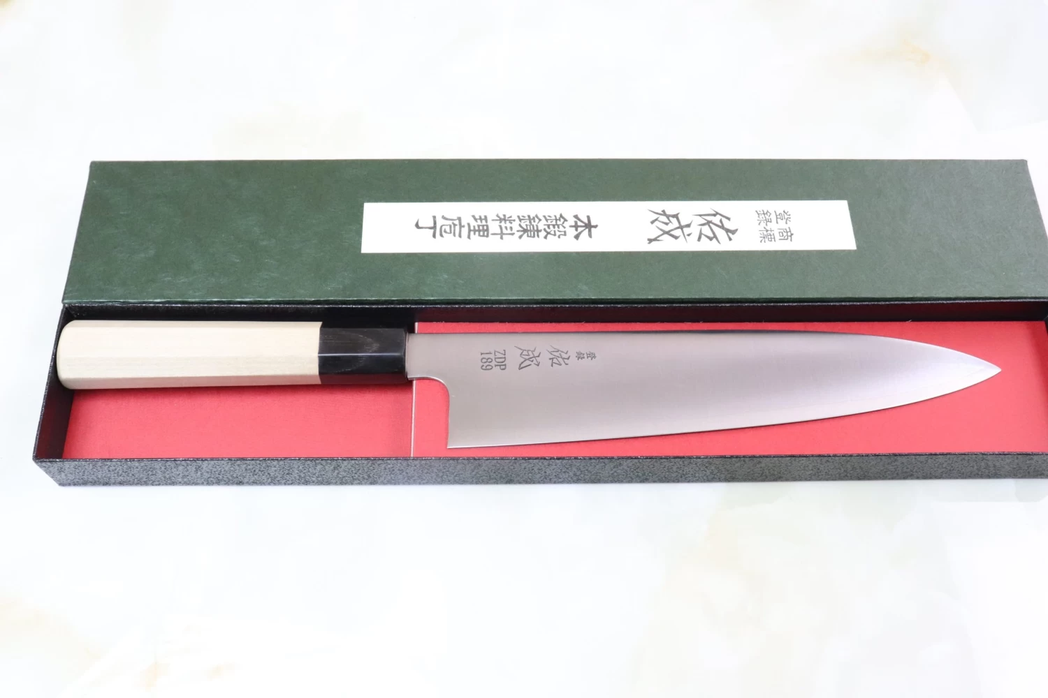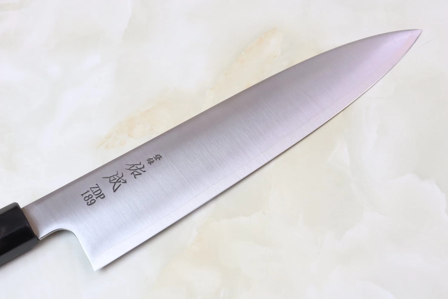 Hitachi ZDP-189 is a premium Powdered Metallurgy (P.M.) tool steel (Carbon 3%, Chromium 20%) that is very attractive to knife enthusiasts, but is seldom seen in the kitchen knife market.